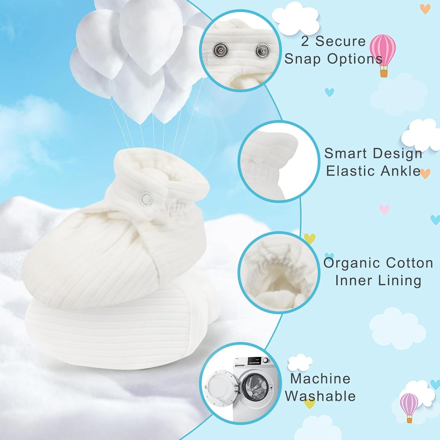Baby Booties Organic Cotton Infant Bootie Warm Cozy Soft Sock Shoes Adjustable Boots for Newborn Boys Girls