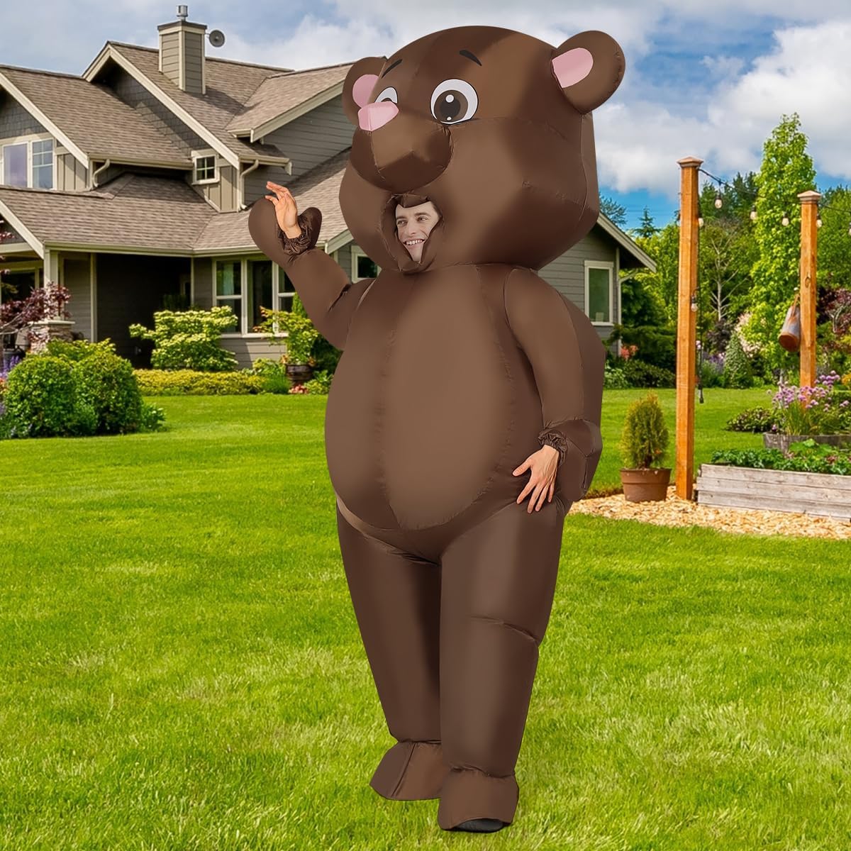 GOOSH Inflatables Costume for Adults Bear Costume Men Women Funny Blow up Halloween Costume for Halloween Fancy Dress Party Cosplay