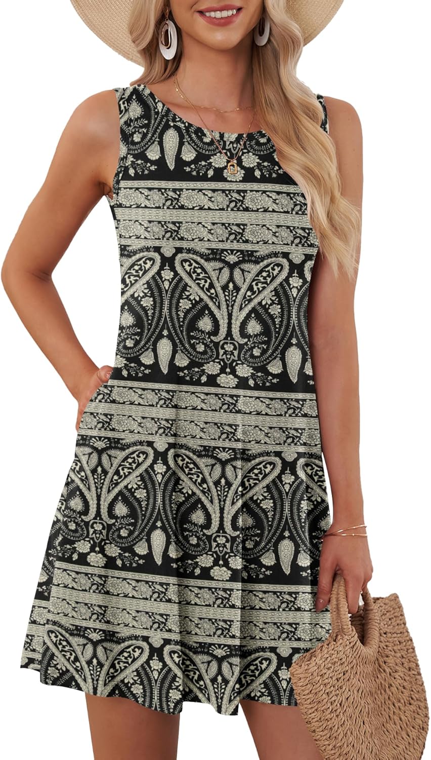 AUSELILY Womens Summer Dresses 2025 Casual Sleeveless Boho Floral Sundresses Beach Swimsuit Coverup with Pockets