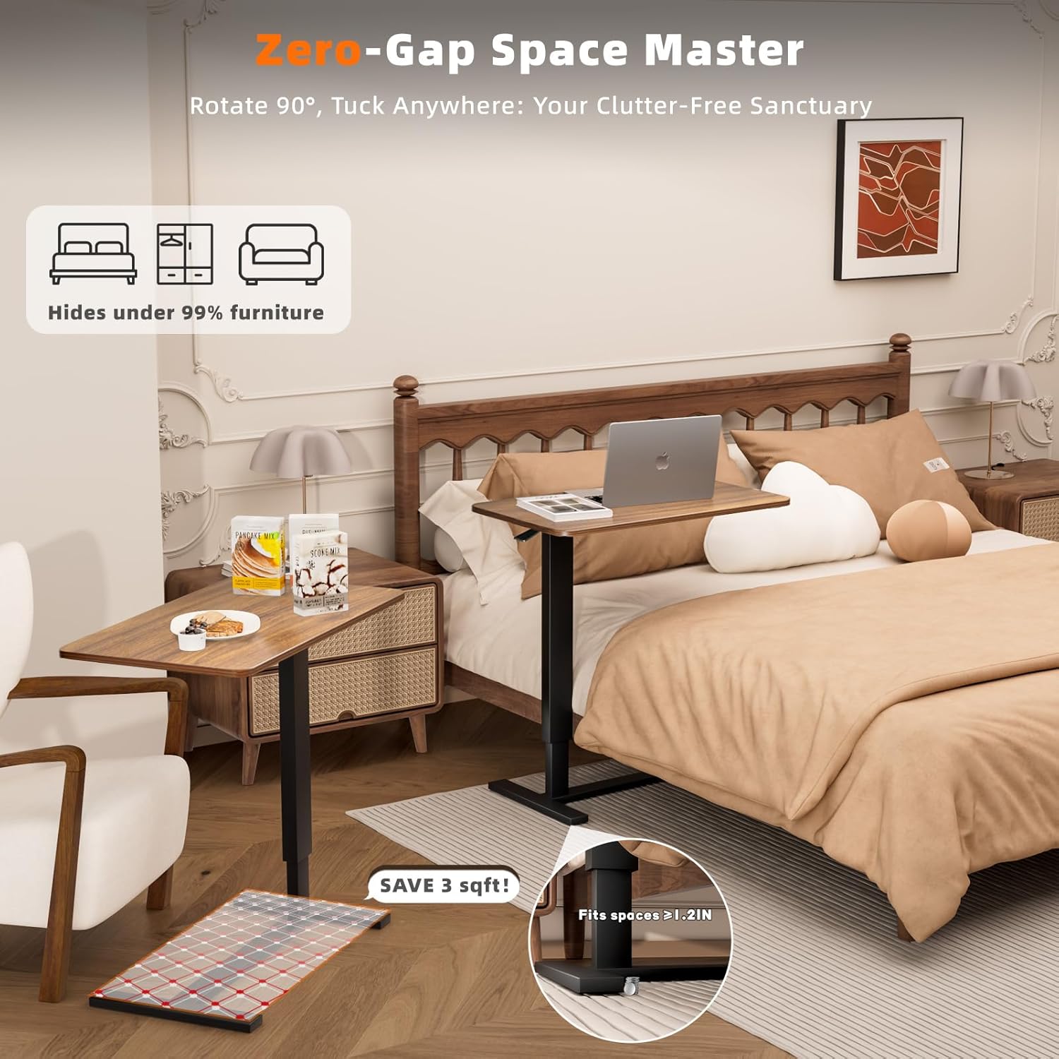 ADJUSTABLE HEIGHT: Features a smooth hydraulic lift mechanism that adjusts from 25.6 to 37.1 inches tall to accommodate different bed heights and user preferences. This makes it an ideal adjustable bed side table and a perfect overbed table with wheels adjustable height, providing the perfect ergonomic position whether you're sitting in a recliner or lying in bed
