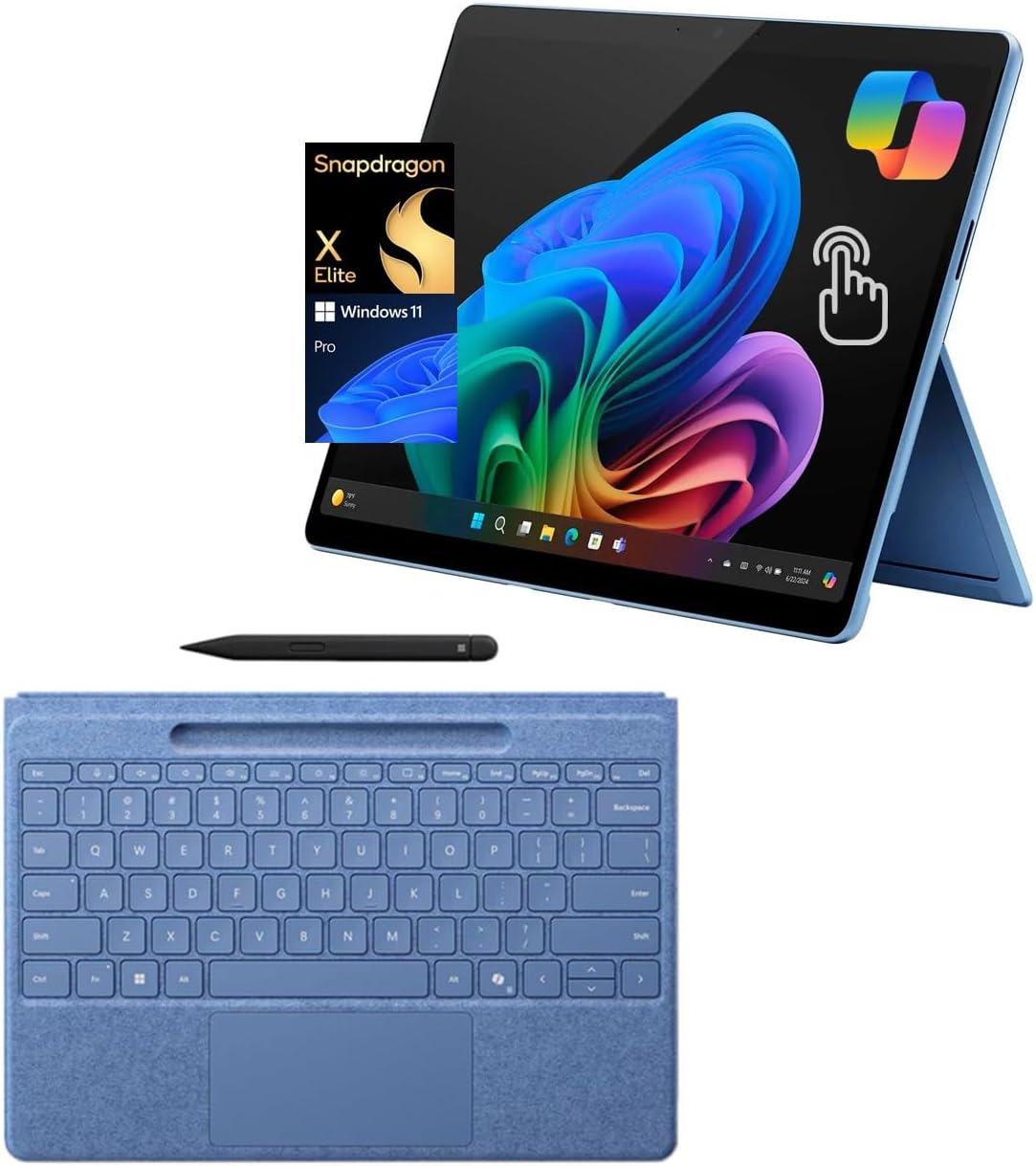Microsoft Surface Pro 11 Bundle, 2-in-1 Tablet with Sapphire Flex Keyboard and Slim Pen, Copilot+ PC, 13" Touchscreen OLED, Snapdragon X Elite (12 Core), 16GB RAM, 1TB SSD, Win 11 Pro, Sapphire