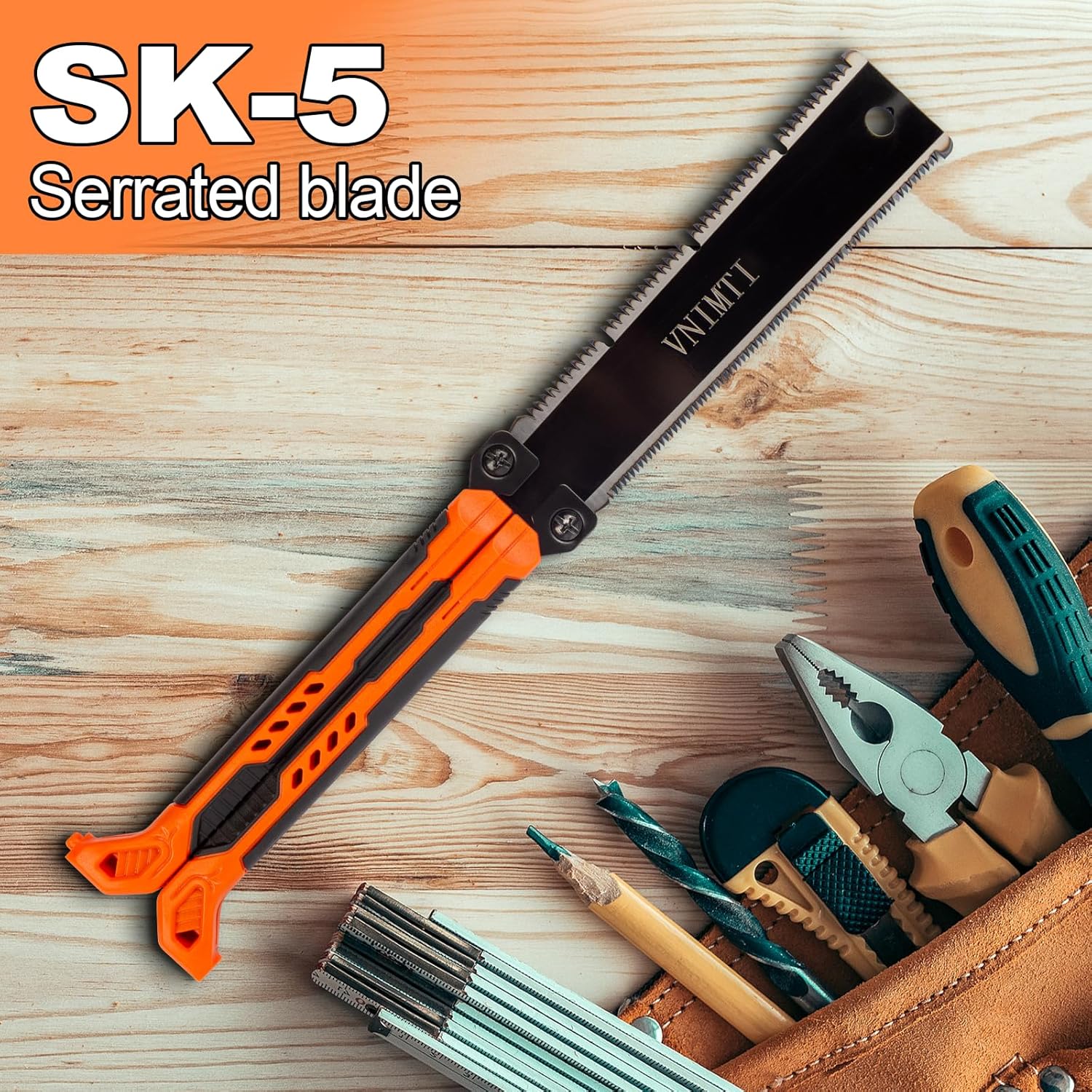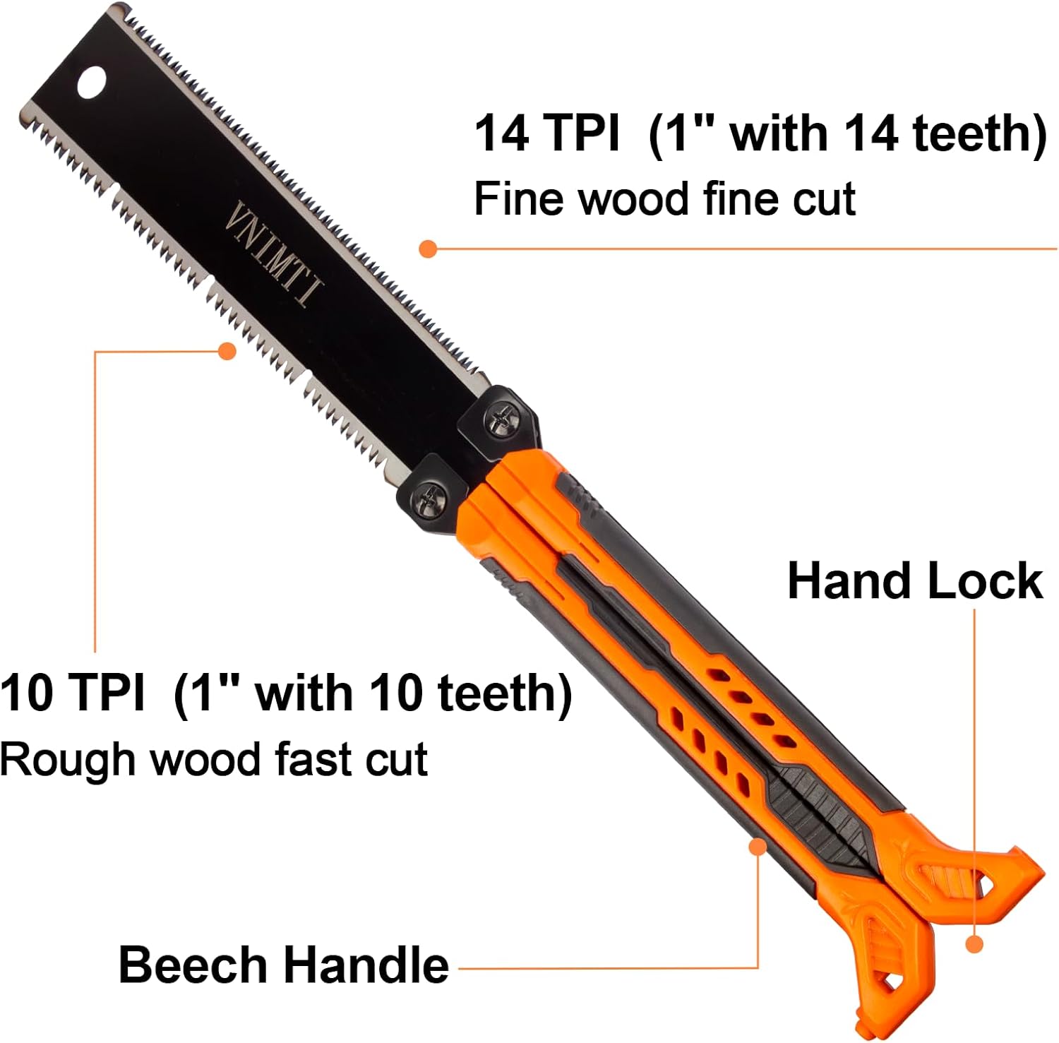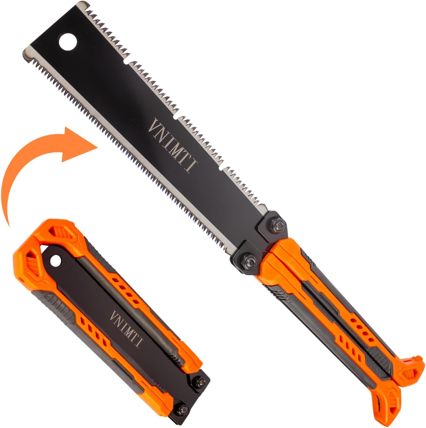 VNIMTI Hand Saw for Wood Cutting, 16 Inch Folding Hand Saw with SK5 Double Edged Blade, Orange
