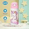 Girls Insulated Water Bottle with Covered Pop-Up Straw,16 oz Kids Cups with Stainless Steel Leak Proof for School Pink(Unicorn)