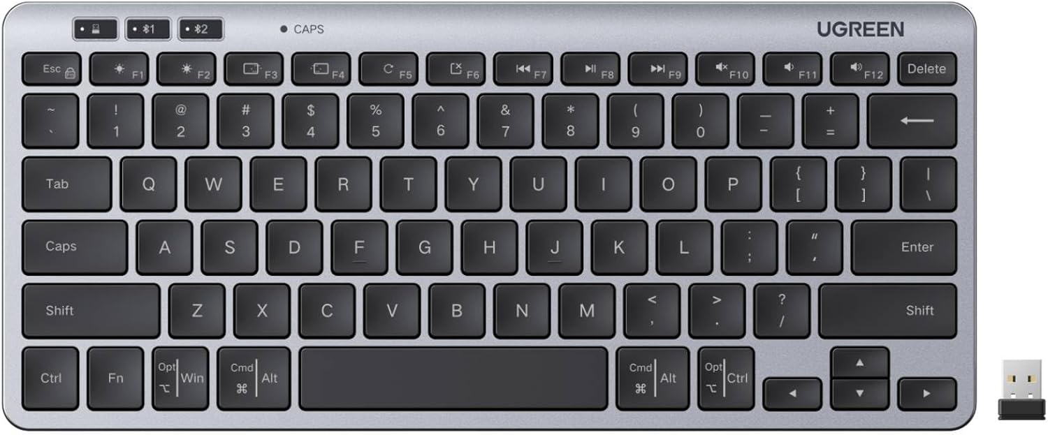 UGREEN K551 Slim Quiet Wireless Bluetooth 78Keys Keyboard, 3-Device Free Switching with Bluetooth & 2.4G, Compatible with Windows/macOS/iOS/Android, Works with MacBook, Lenovo, HP