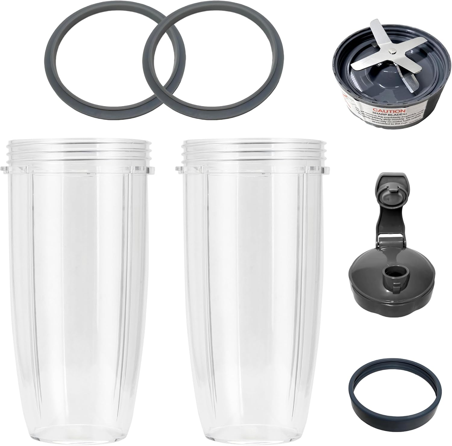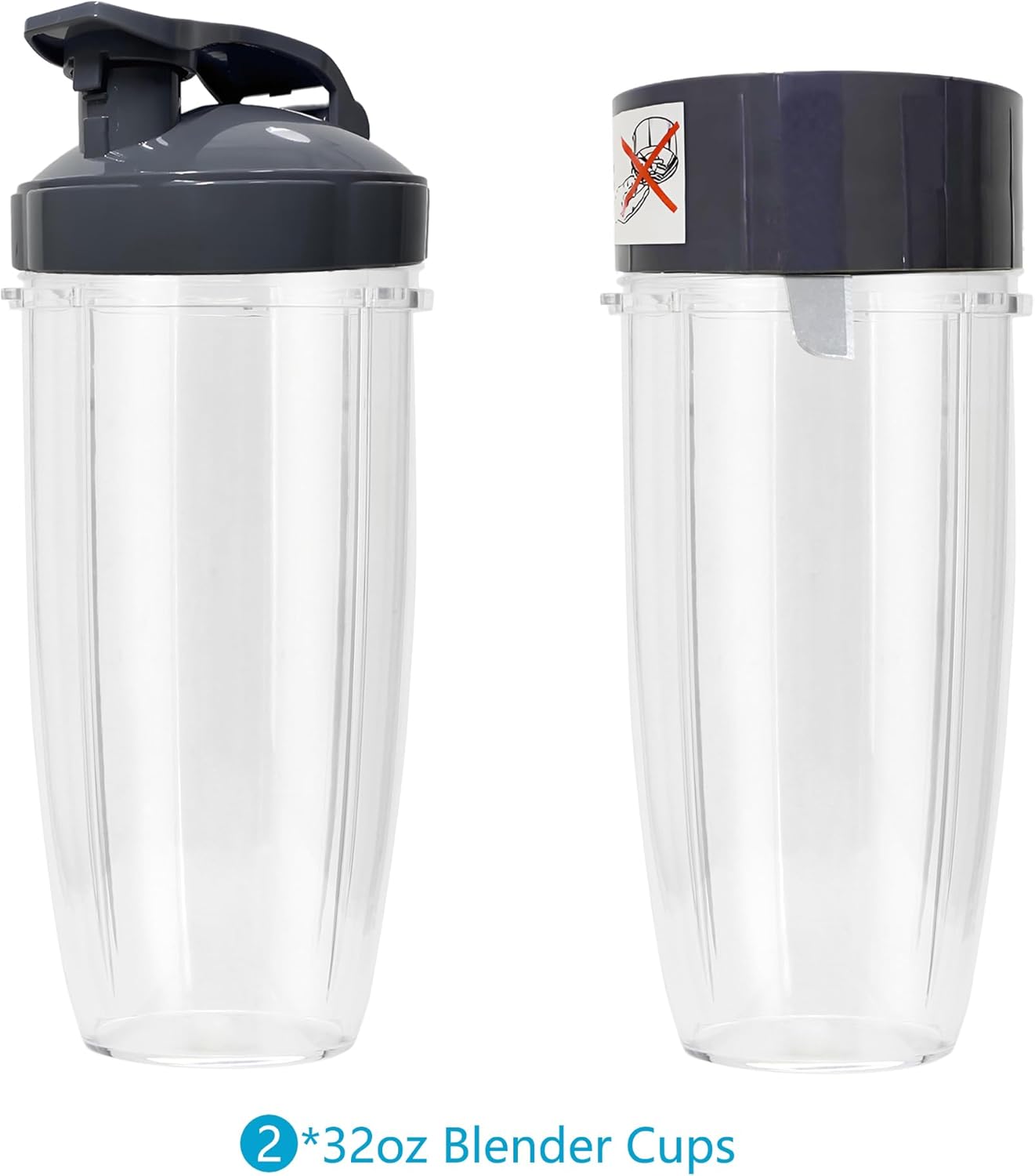 Blender Cups 32oz Replacement Blade with Flip-Top To-Go-Lid Compatible With NutriBullet 600w/900w, 7 Piece Set