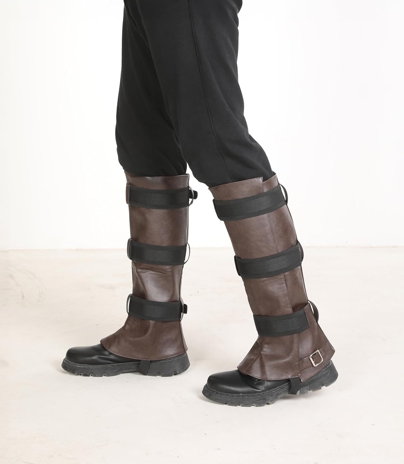 Men's Costume Boot Cover Renaissance Pirate Boots Cover PU Leather Steampunk Shoes Cover,Viking Medieval Boot Cover Leg Gaiters Cosplay Accessary