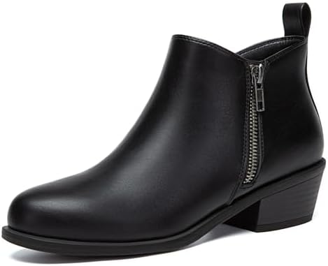 Athlefit Women's Ankle Boots Chunky Low Heel Comfortable Short Boots Round Toe Dress Booties with Side Zipper