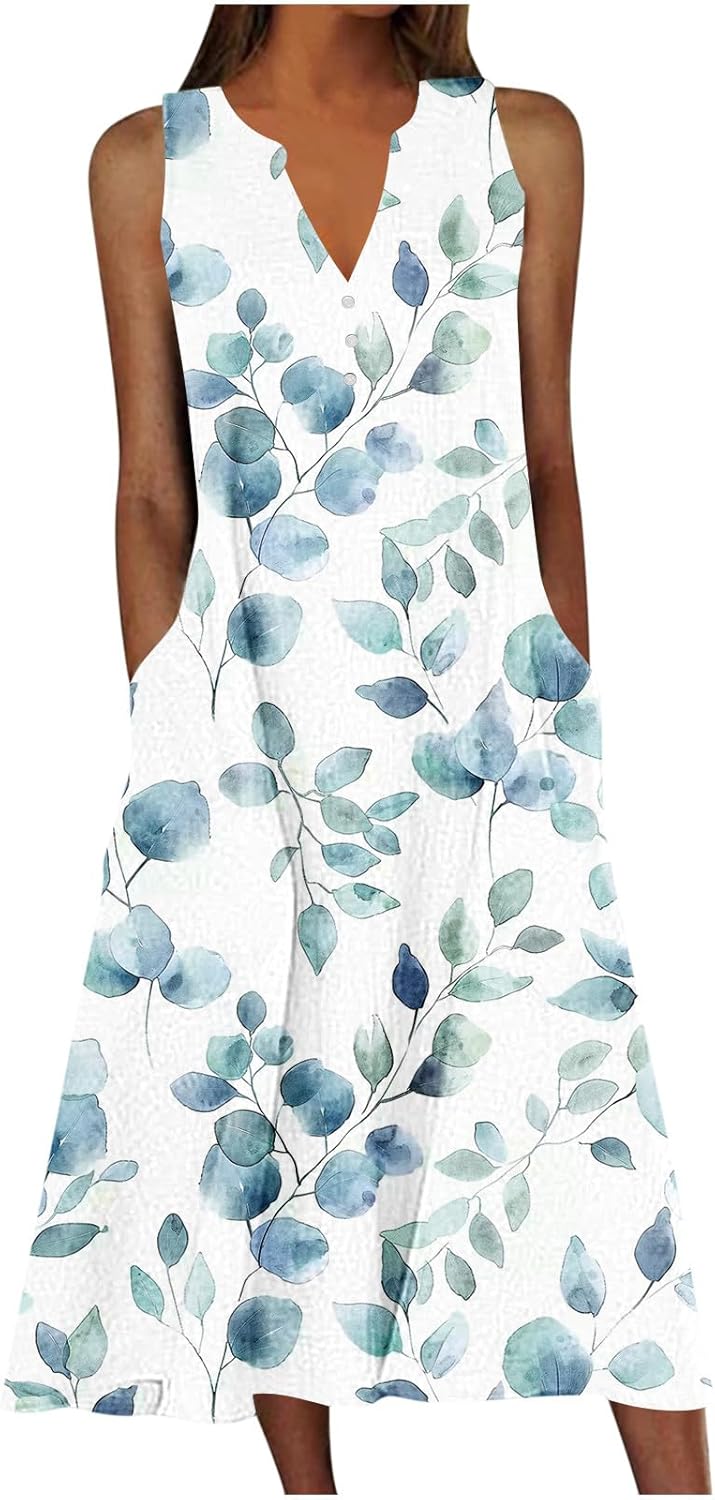 Sundress for Women Sleeveless Tank Dresses 2025 Vacation Plus Size Dress Casual Button V Neck Boho Floral Beach Dress