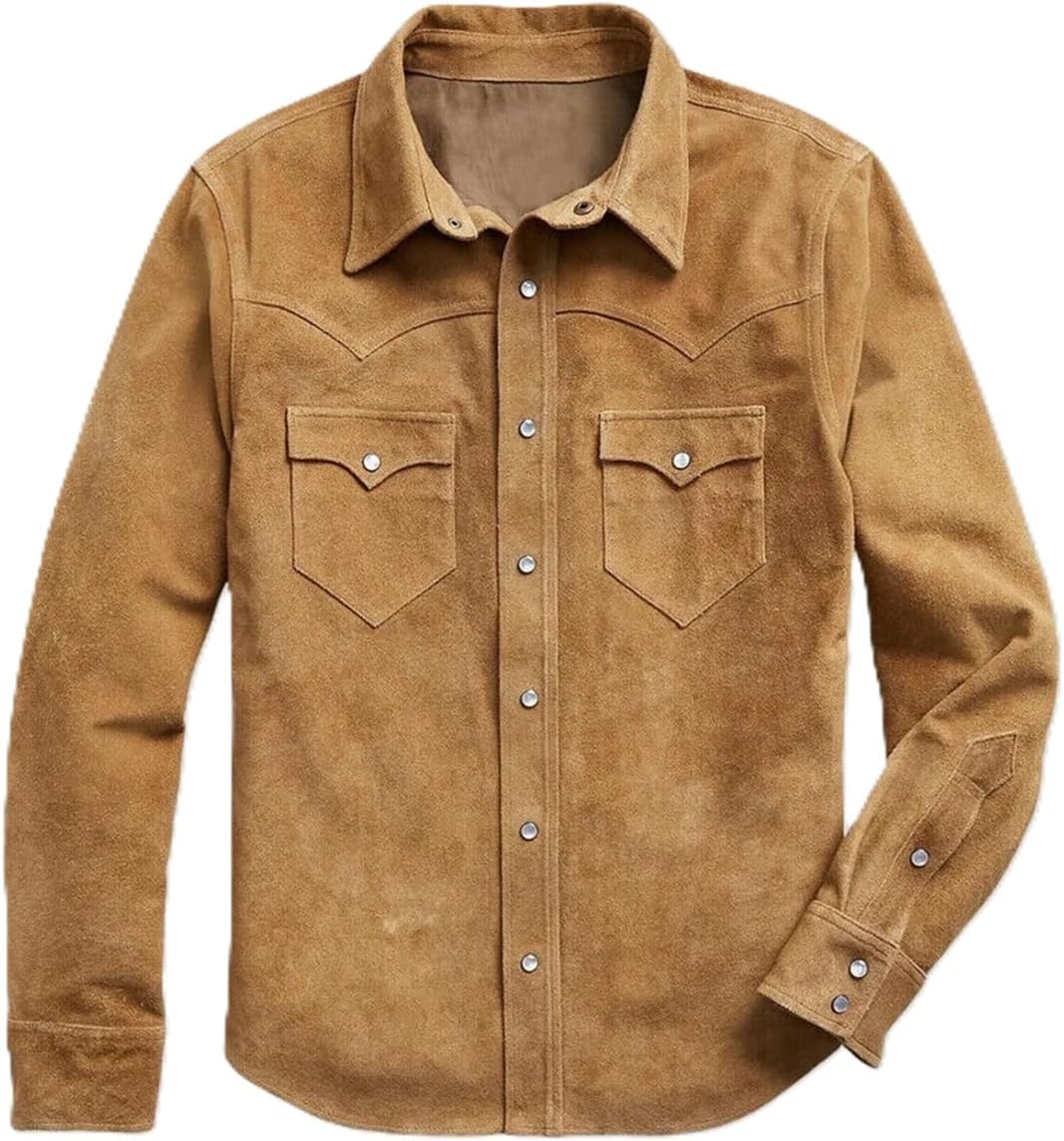 Western Denim Style Roughout Suede Shirt - Soft Genuine Suede Leather Journeyman Down Shacket Jacket