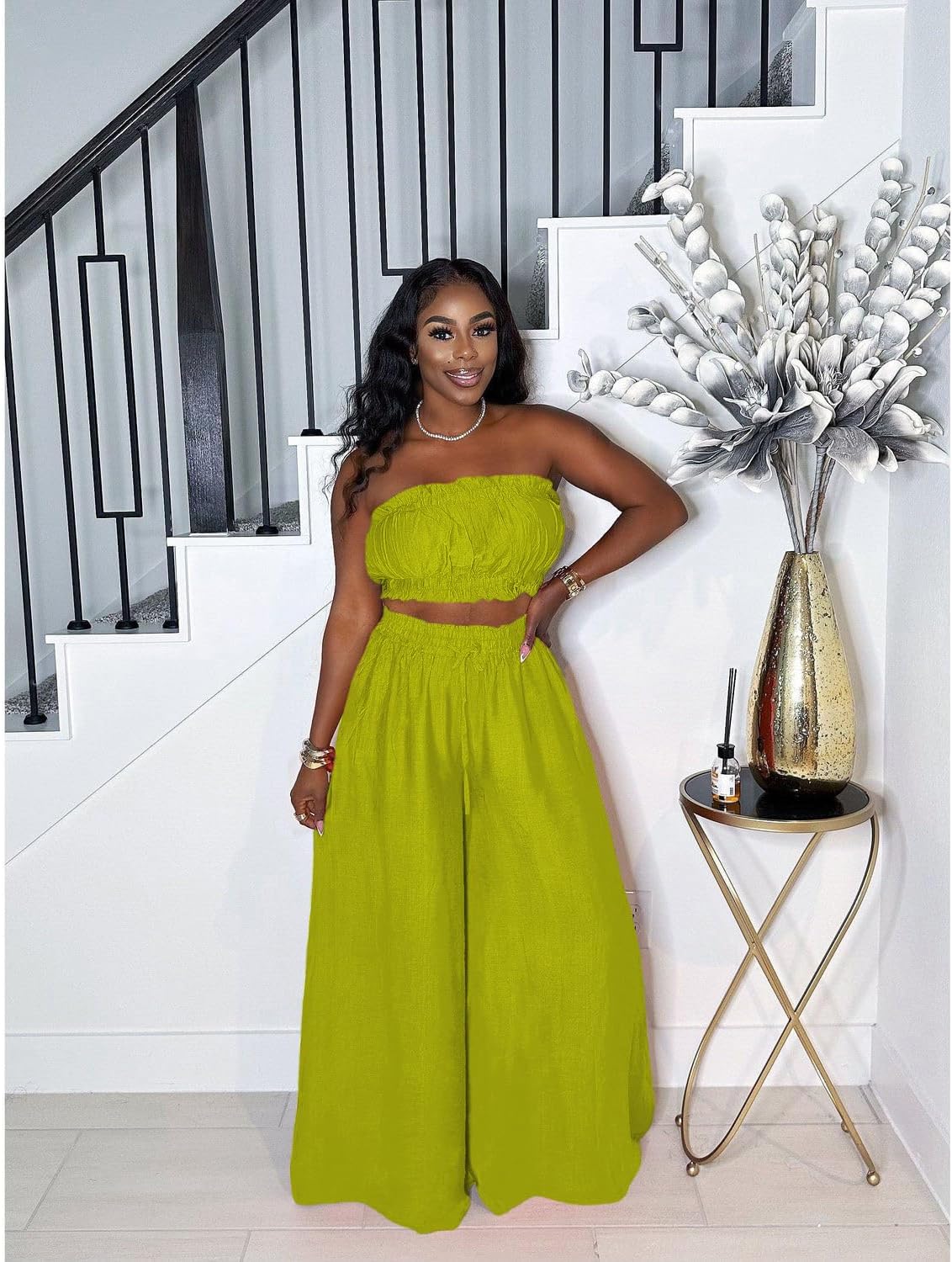 Two Piece Sets for Women Summer Outfits Crop Tops and Wide Leg Pants Sets Sexy Jumpsuits Vacation Outfits with Pockets