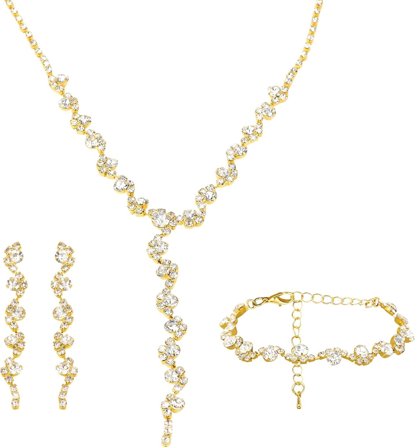 CAVETEE Gold Jewelry Set for Women, Bride Crystal Wedding Necklace and Earring Sets for Women Bridal Bridesmaid Prom