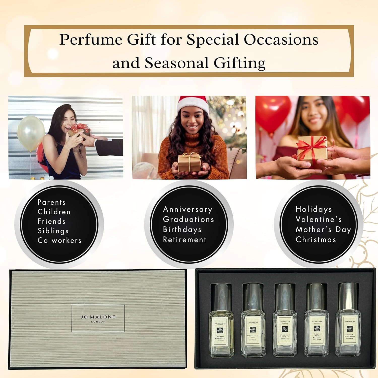 Discover the world of Jo Malone with this exquisite mini cologne gift set, crafted for both men and women. This luxury collection features five signature fragrances, each in a convenient 0.30-ounce travel-size bottle. From the fresh and fruity English Pear & Freesia to the earthy, invigorating Wood Sage & Sea Salt, this set offers a perfect scent for every mood and occasion. Ideal for gifting, travel, or personal use, these mini perfume samples allow you to experience Jo Malone’s timeless elegance anytime, anywhere.