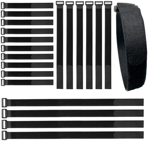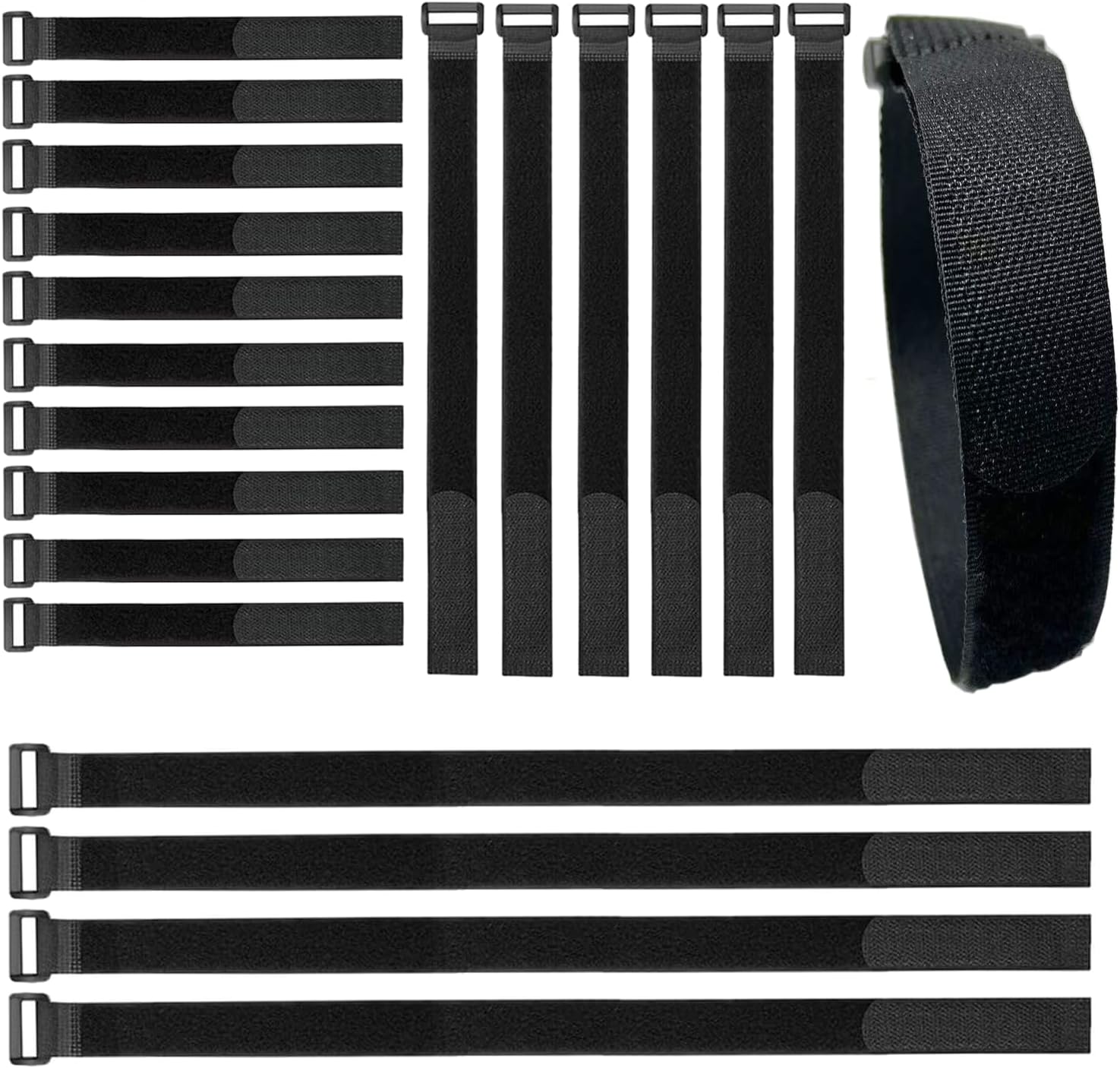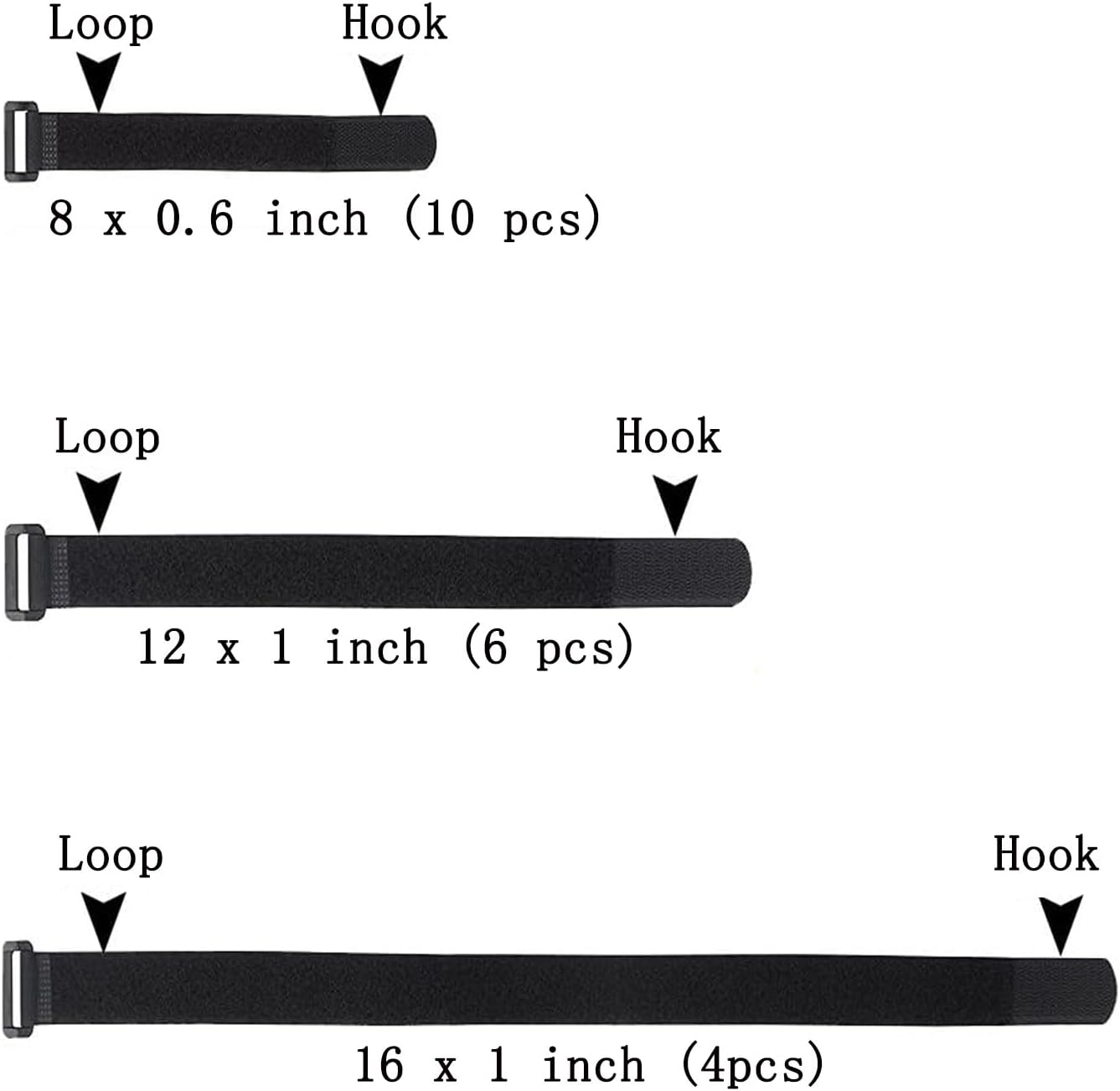 Contains 20pcs includes (8 inch x 10pcs,12 inch x 6pcs,16 inch x 4pcs) multi-purpose & reusable black cable straps with hook loop