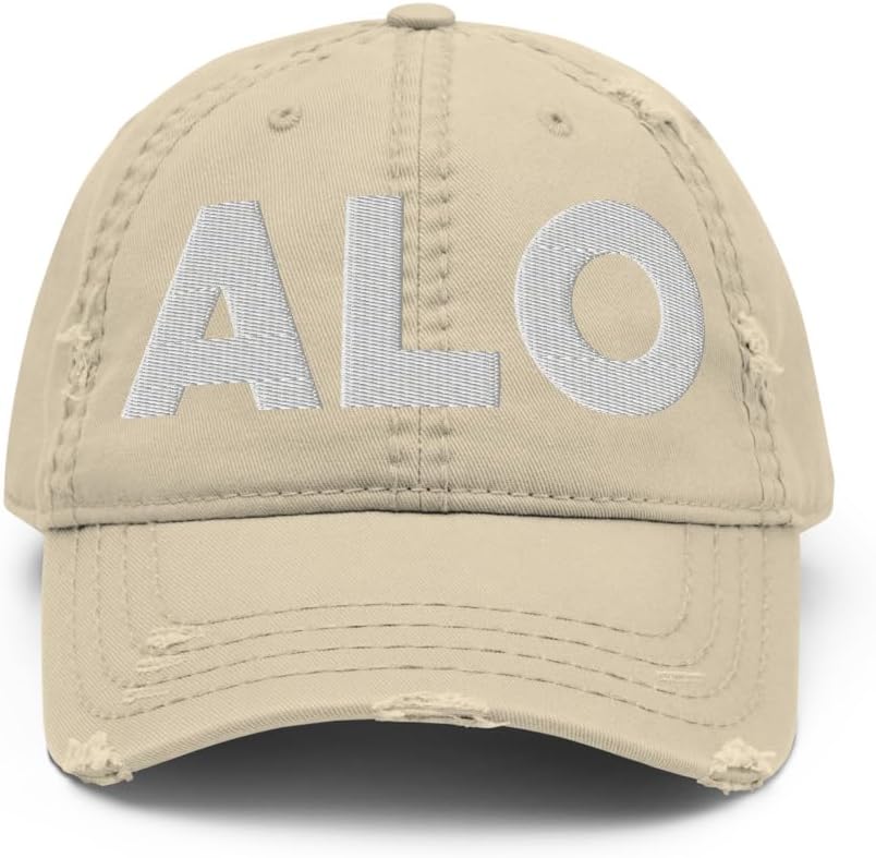 ALO Airport Hat (Embroidered Distressed Dad Cap) Flying to Waterloo Airport Gift