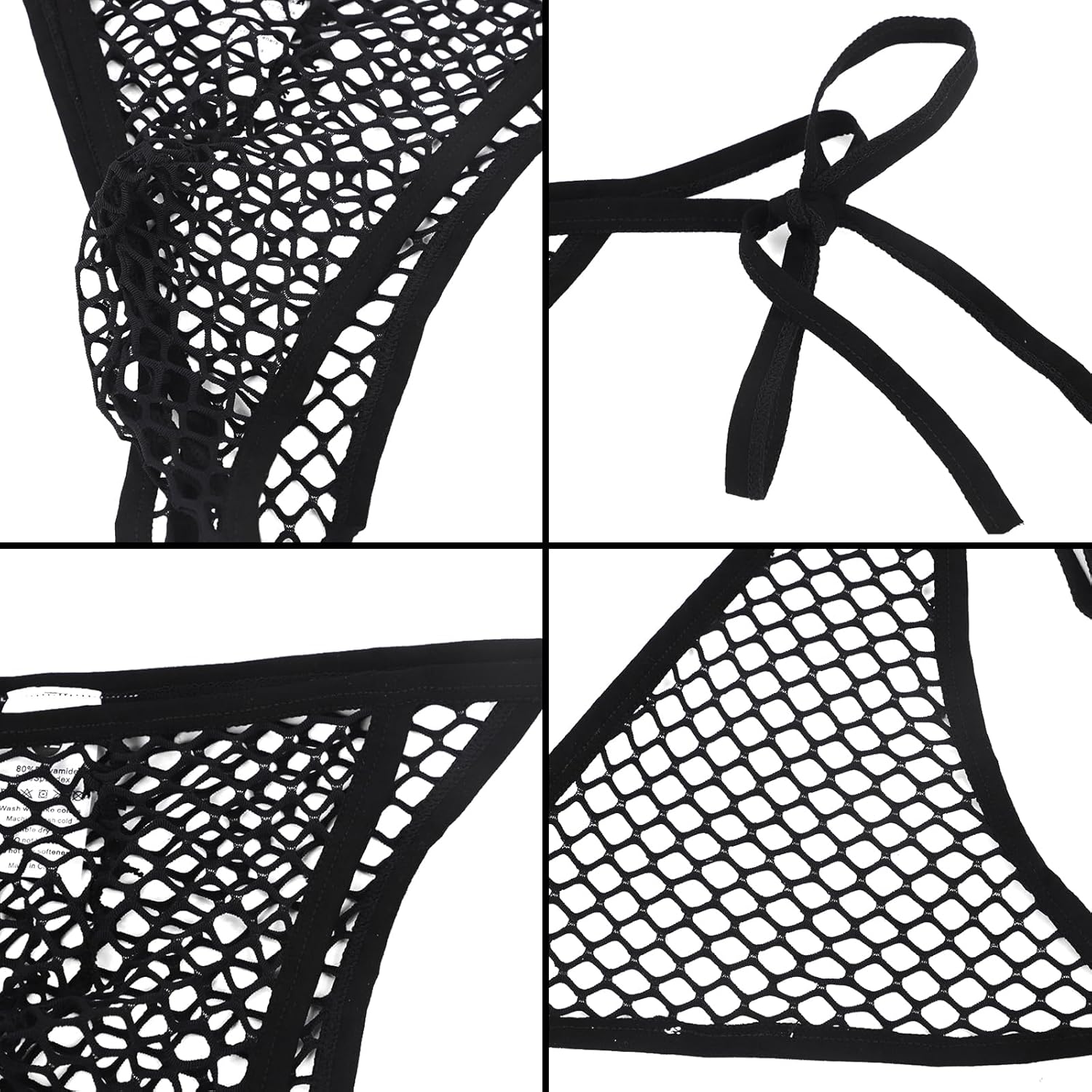 Men's Exotic Fishnet Underwear Mesh Sexy Lingerie Shorts G-Strings See Through Thongs Low Rise Briefs with Side Tie