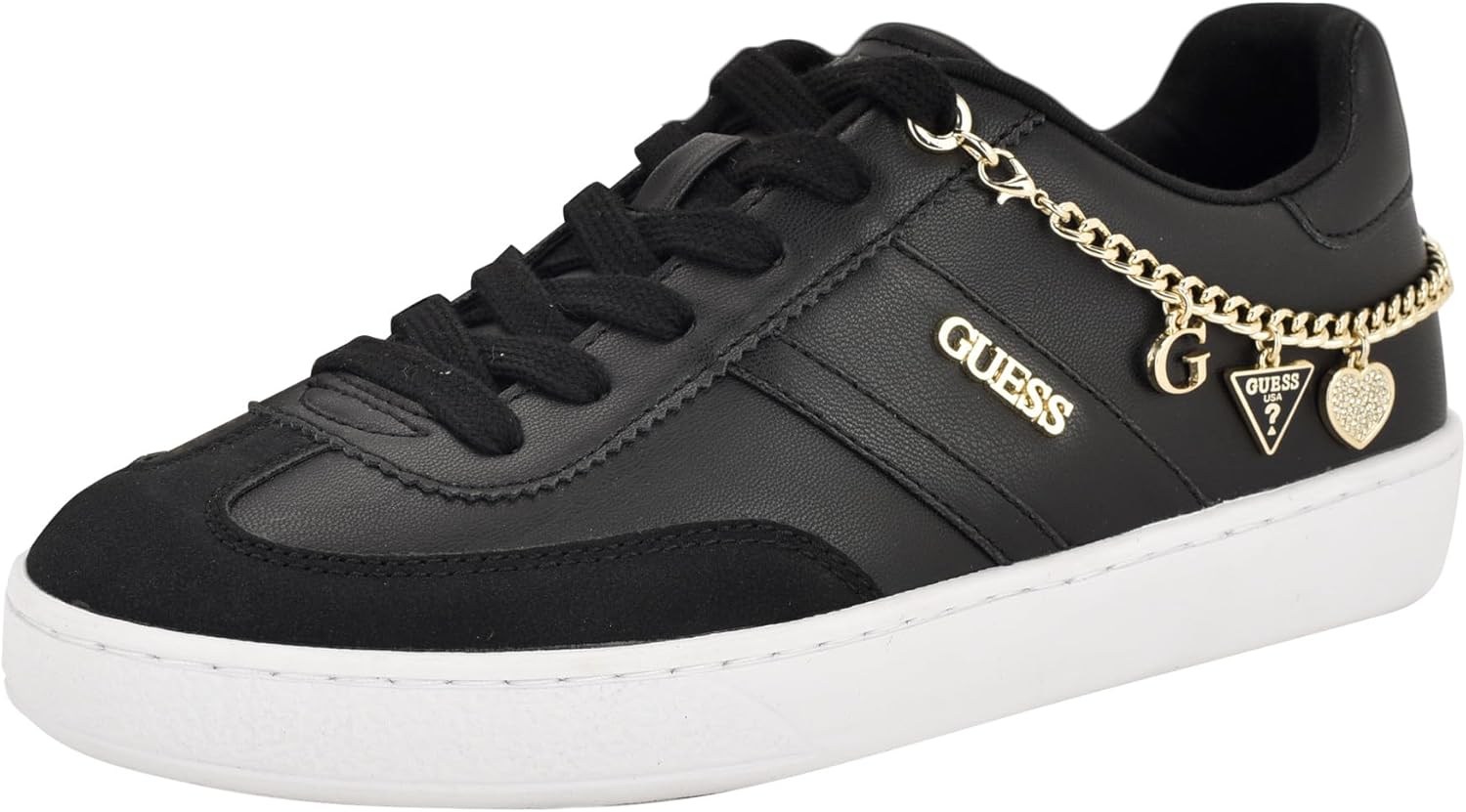 Add a charming touch to your athleisure look wearing the Guess Naoko sneaker. A class T Toe design gets a trendy update with a gold chain featuring adorable Guess charms. Est. 1981, Guess is a global lifestyle brand and a symbol of a young, adventurous lifestyle.