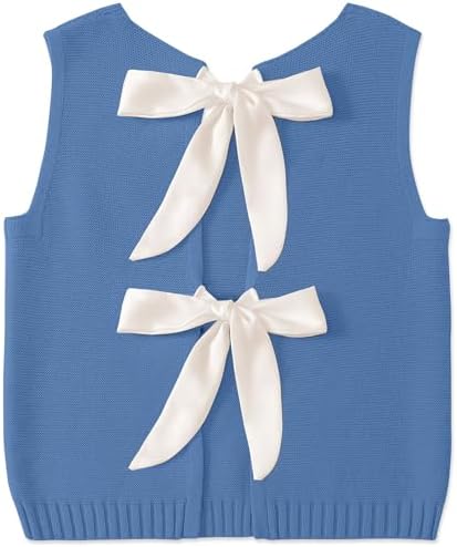 UEU Womens Sweater Vest Bow Tie Back Knitted Tank Tops Casual Crop Vest Tops 2025 Y2K Fashion Clothes