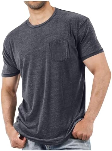 Men Short Sleeve T Shirts with Chest Pocket, Solid Color Crewneck Tee Soft Comfy Summer Tops Workout Athletic Tshirt