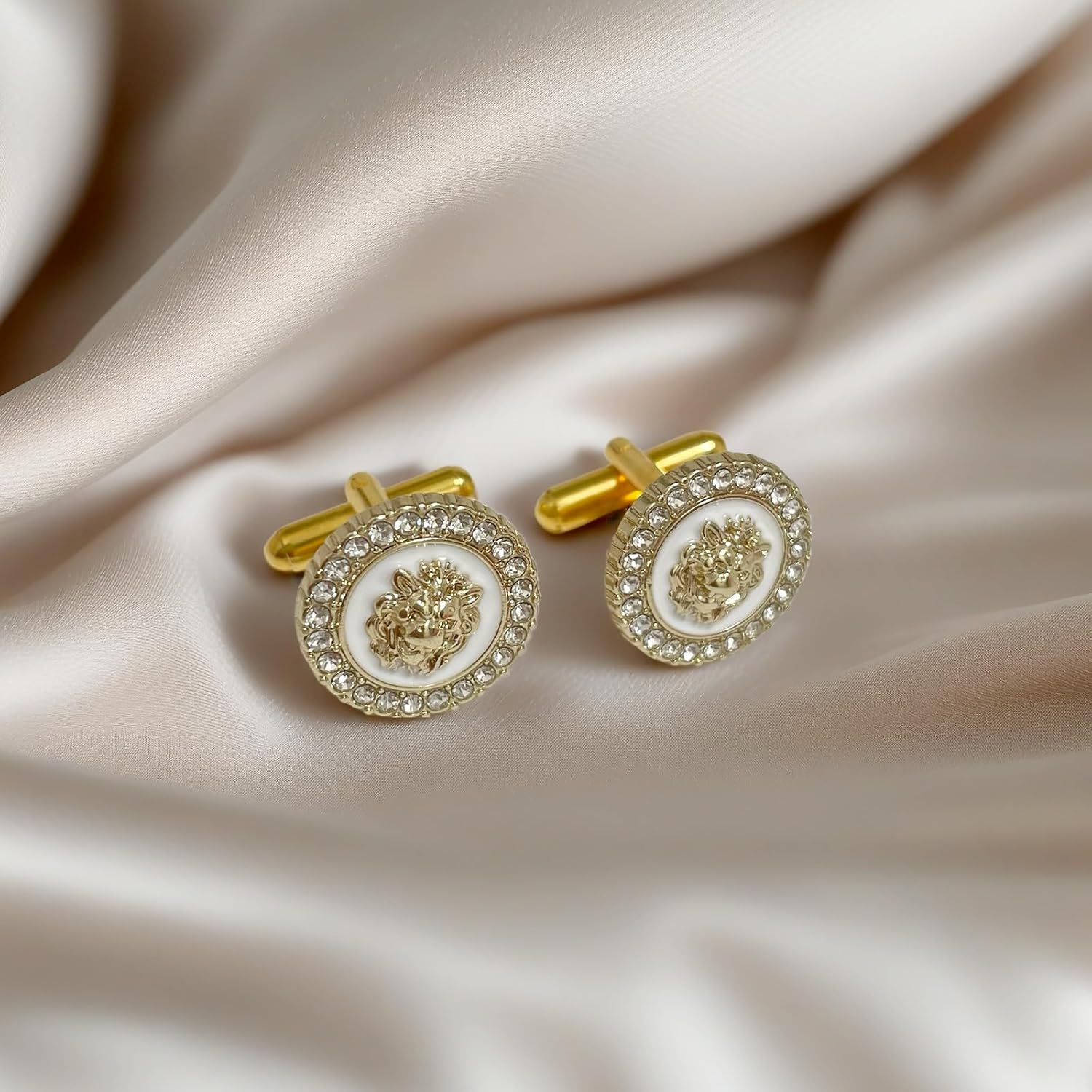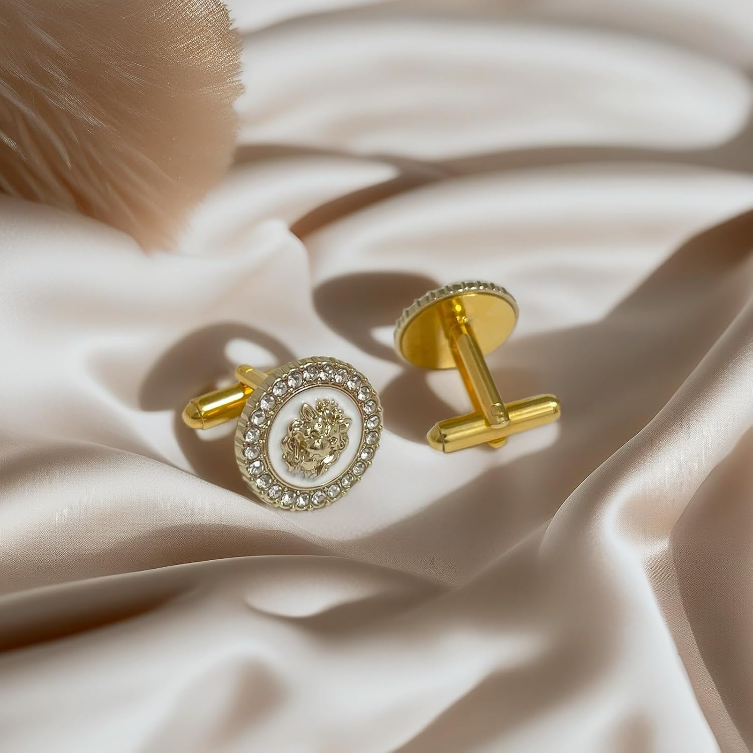 Men Cufflinks Gold Lion Head Rhinestone Elegant Stylish Sparkling Wedding Ceremony Business Formal Shirt Accessories