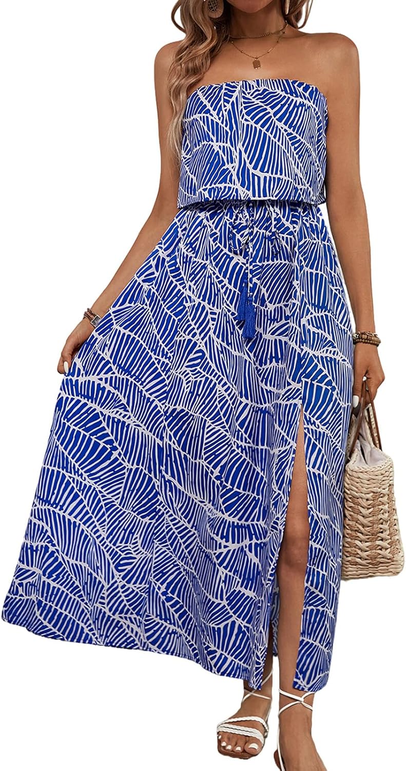 Women's Ruffle Floral Maxi Summer Casual Dress Off Shoulder Wedding Guest Slit Hem Beach Prom Dresses