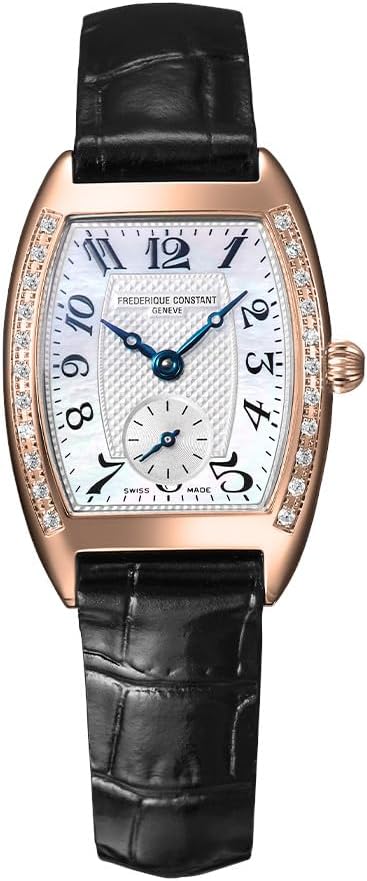 Fredrique Constant Ladies Swiss Made Classic Quartz Diamond Accent Rose Gold Plated Case Watch and Black Leather Strap, Mother of Pearl Dial Style: FC-235APWUS1T2D24