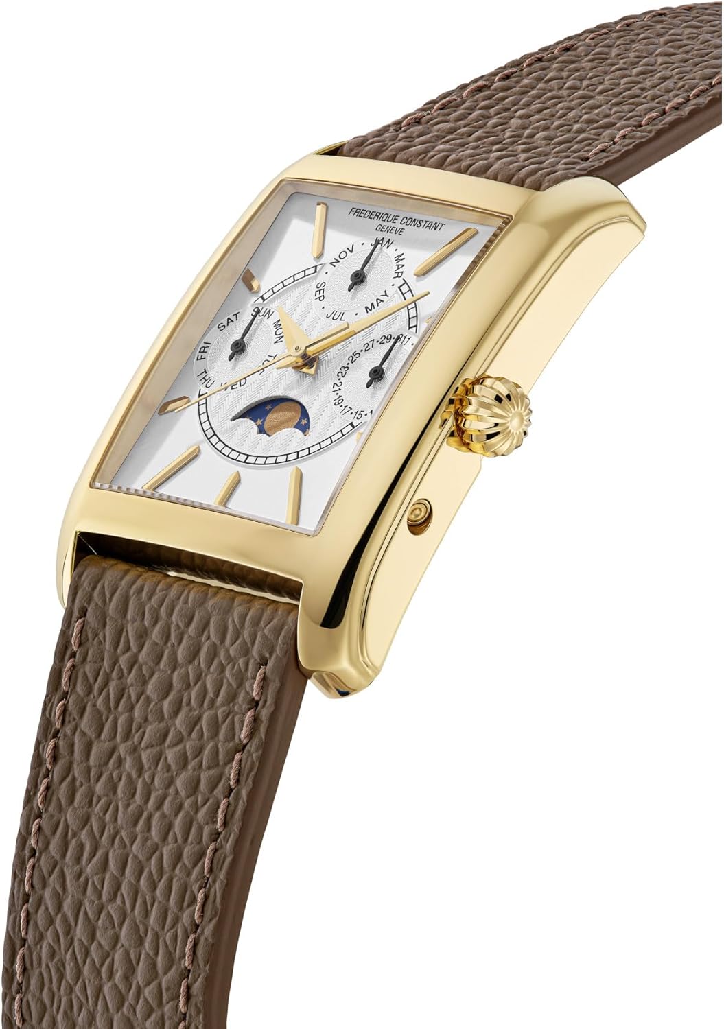 Frederique Constant Mens Classic Carré Moonphase Quartz Gold Stainless Steel Case Watch and Brown Leather Strap Style: FC-265S4C5