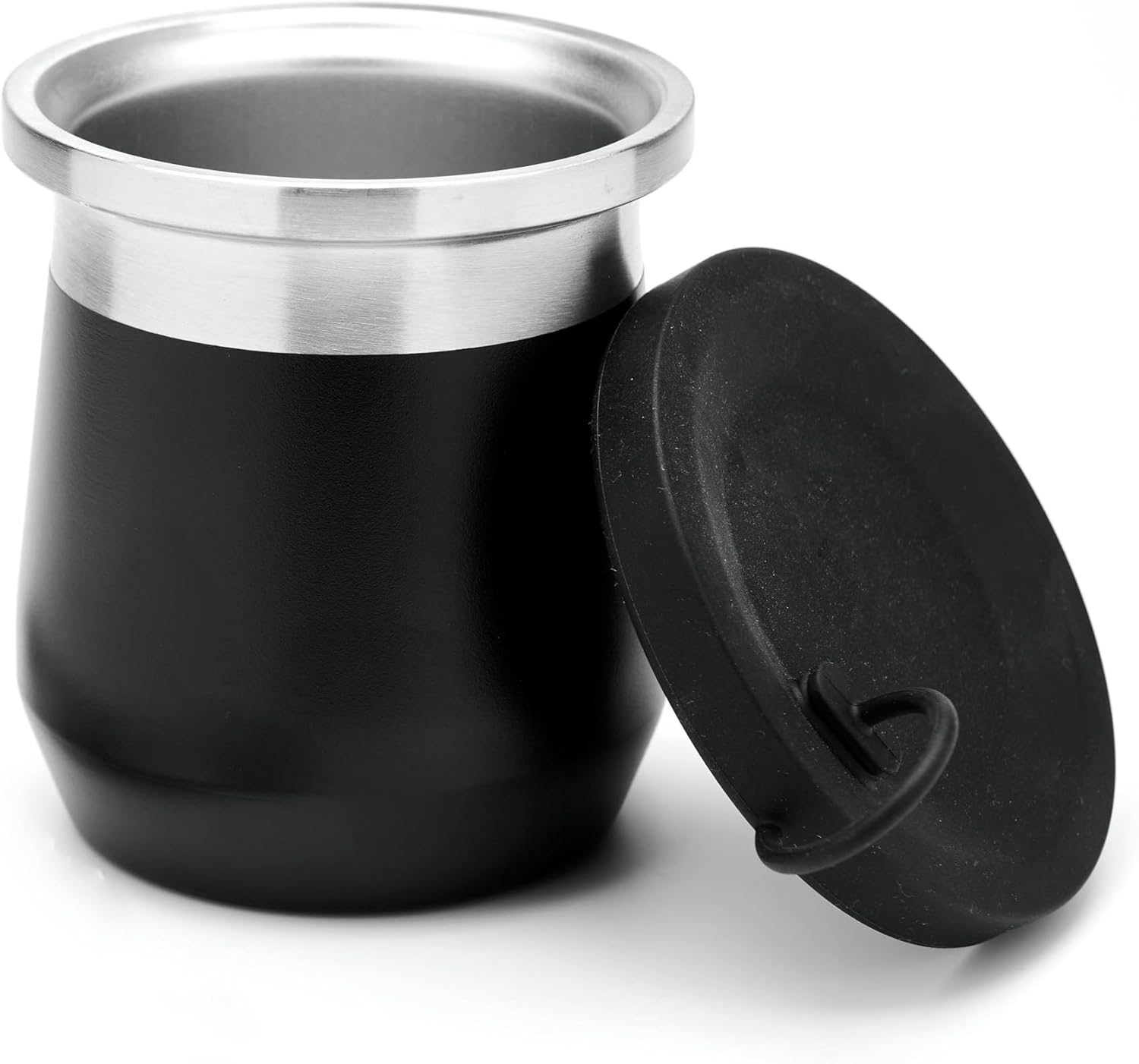 BALIBETOV Yerba Mate Gourd – 9 fl oz Stainless Steel Yerba Mate Cup with Double-Wall Insulation, Non-Slip Base, Spill-Proof Silicone Lid – Mate Argentino – Mate Mugs. (Black)