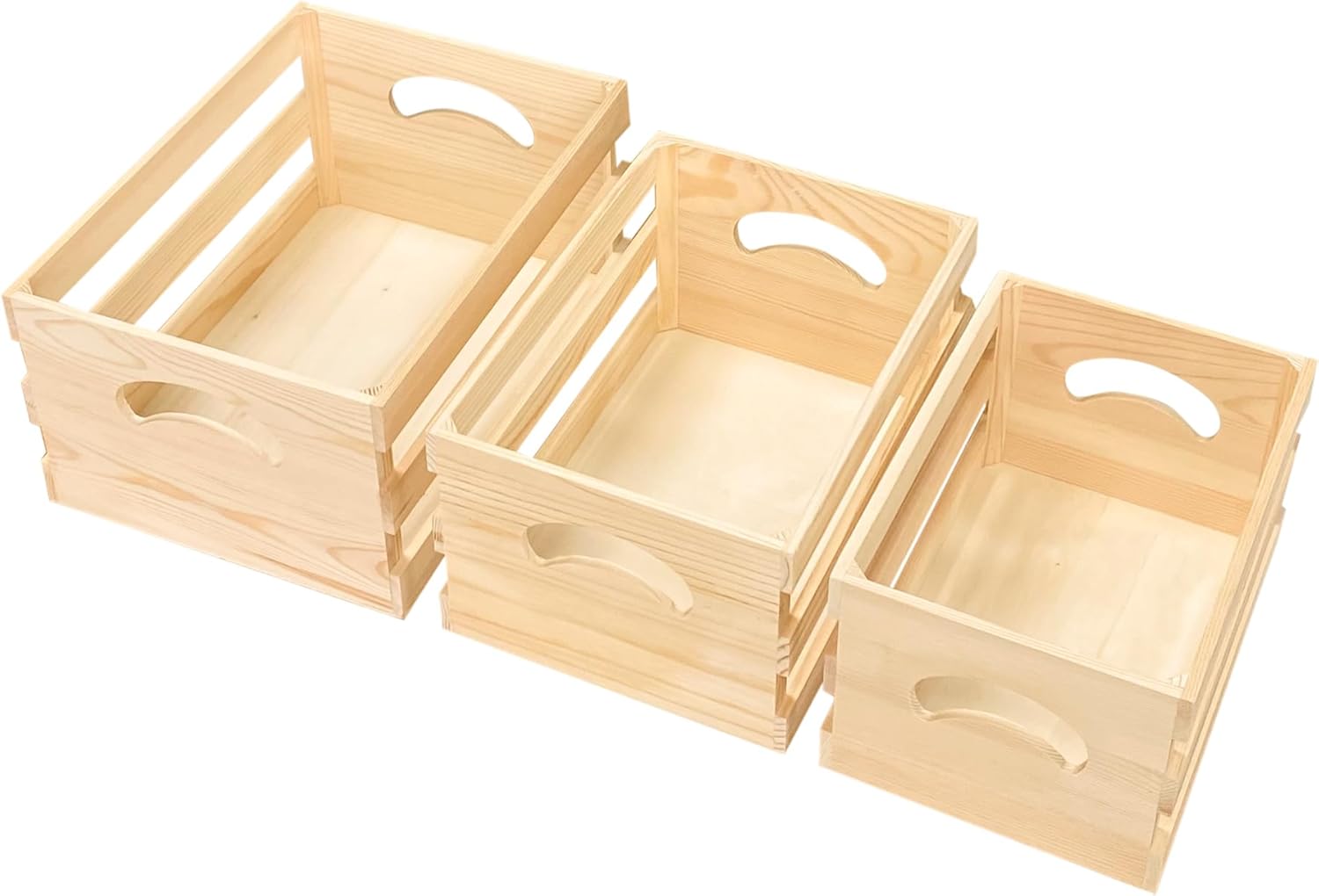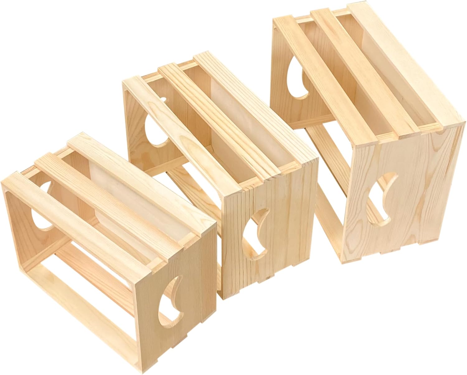 3 Pieces Wooden Pallet Crates Nesting Unfinished Wood Trays Storage for DIY Crafts (Large Size 13.4 x 9.8 x 6.7 in)