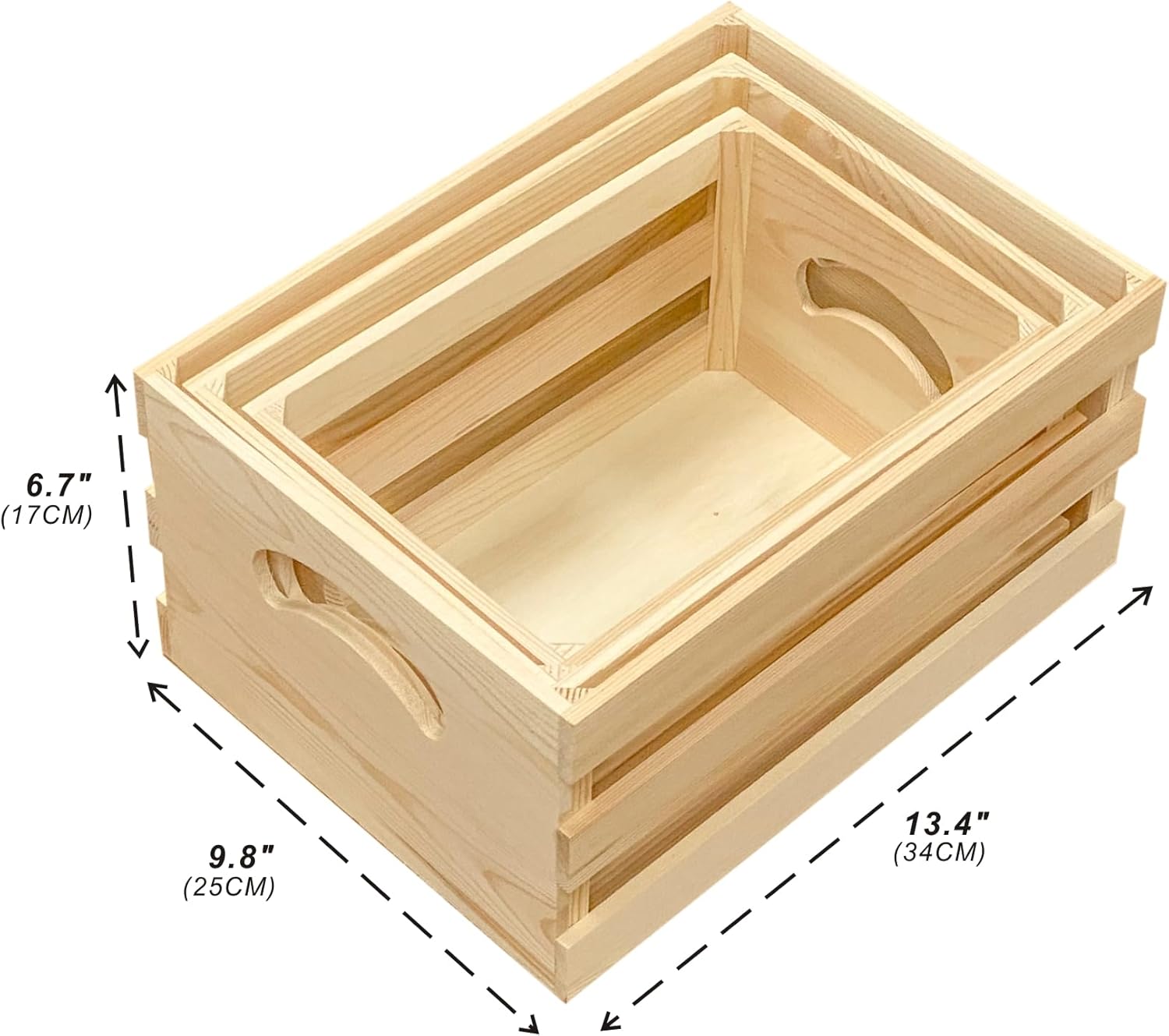 What's including: 3 pieces of rectangle shaped wooden crates in different size ,ready for painting DIY crafts