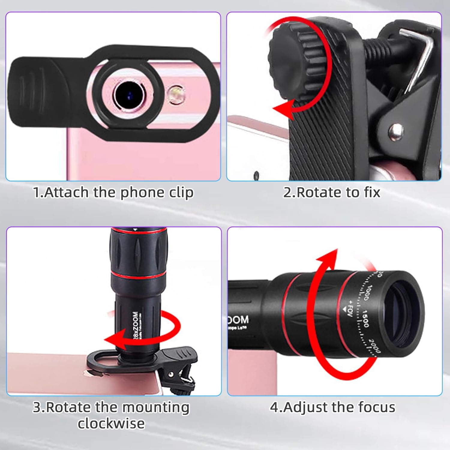Suitable for Most Smartphones: Perfectly compatible with iPhone 16/15/14/13/Samsung S24/S23 Ultra/Huawei Mate/P series/Xiaomi (supports multi-camera phones). It is both a professional photography lens and a portable telescope, which can be used for travel and viewing!