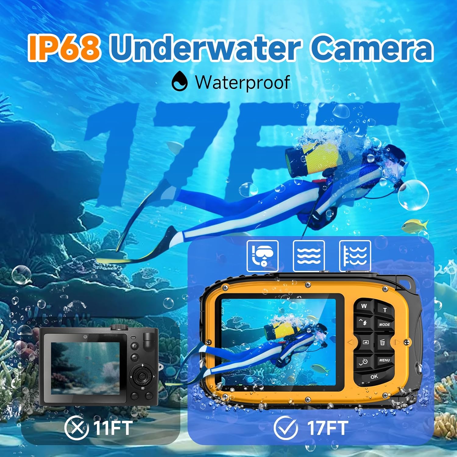 True Waterproof Camera Without Case – up to 17ft Depth:No case needed! This camera is fully waterproof and kid-friendly—tested to work underwater up to 17 ft. Whether it's pool play, beach trips, or rainy adventures, your child can dive right in and capture every moment worry-free