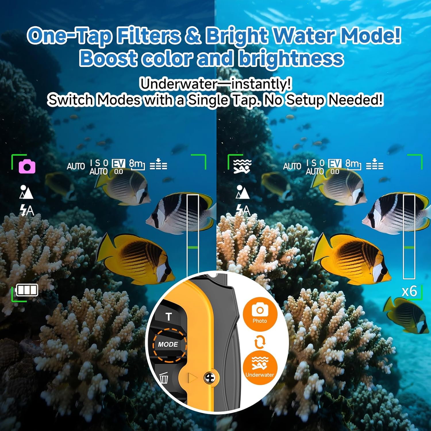 Pocket-Sized and Gift-Ready for Kids:Mini and lightweight, this underwater camera slips easily into a backpack aor pocket—perfect for travel or everyday adventures. With a soft-rounded body and simple interface, it’s a safe and thoughtful gift to help kids explore and document their world