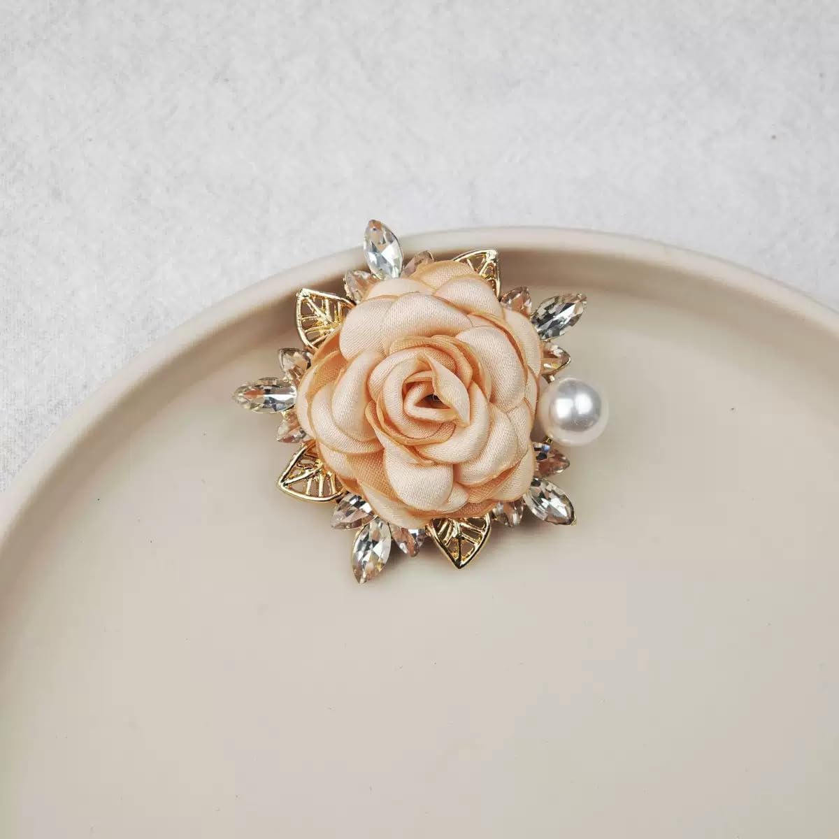 Elegant Rose Flower Brooch Pin for Women Men Handmade Imitation Crystal Pearl Fabric Flower Lapel Pin Dress Suit Accessories for Wedding Party Gentleman's Essentials