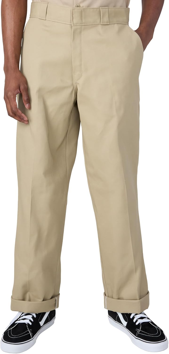 Our Men's Original 877 Loose Fit Work Pants are designed to be timeless and functional. These men's pants combine a loose fit with a high-rise waist and straight leg that tapers slightly at the hem. Made of the durable signature twill we're known for, these pants will soften with wear. The pants are equipped with reinforced seams, welt back pockets, and wide-tunnel belt loops. Size up if these are your first pair of quality Dickies work pants.