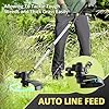 [Auto Line Feed] This cordless string trimmer is designed with an auto line feed system, which can sense the wire length and automatically extend it without manual adjustment. When restarted, the production line will be fed automatically, and the excess parts will be trimmed by blades. Handling easily all your tasks for lawn care, yard, and garden