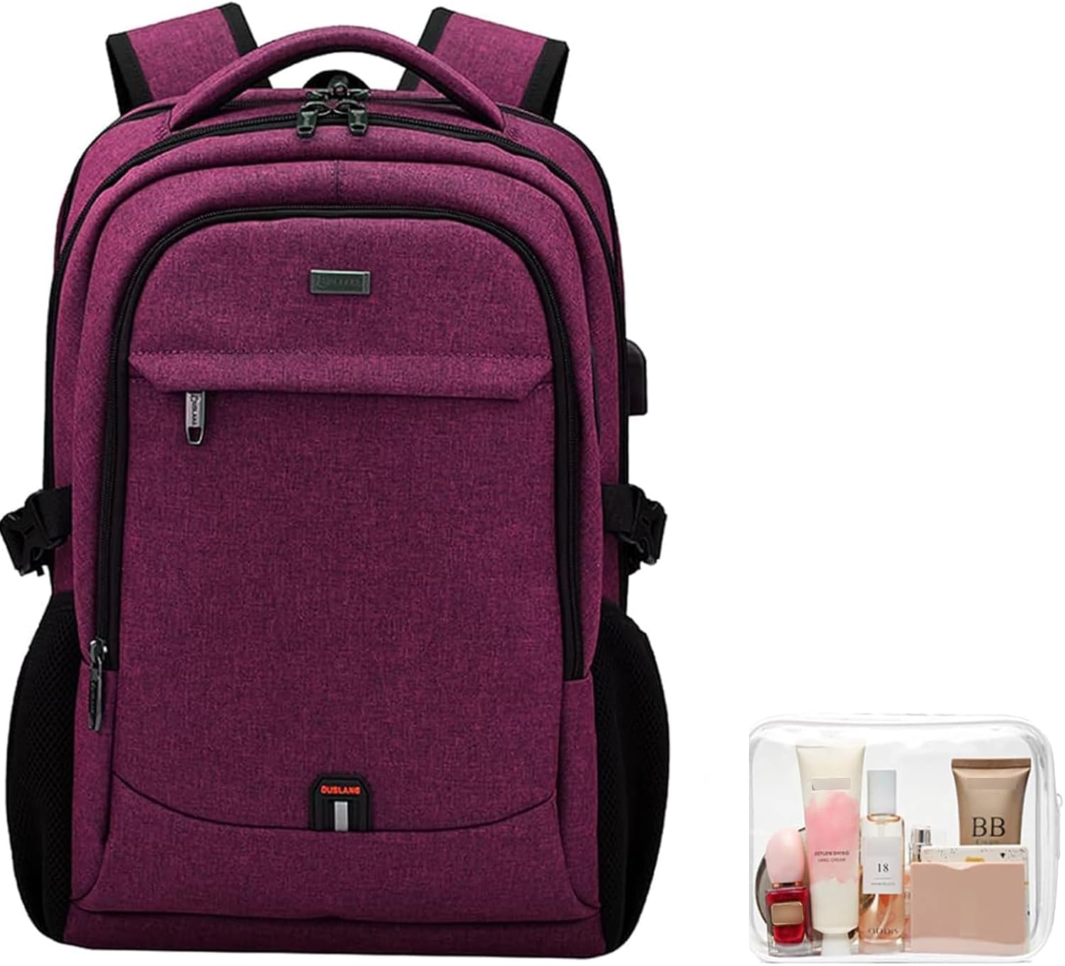 DUSLANG 17 Inch Laptop Backpack for Travel Water Resistant College Backpack for Women Laptop Bag with USB Charging Port and Clear Toiletry Bag Work Backpack,Rose