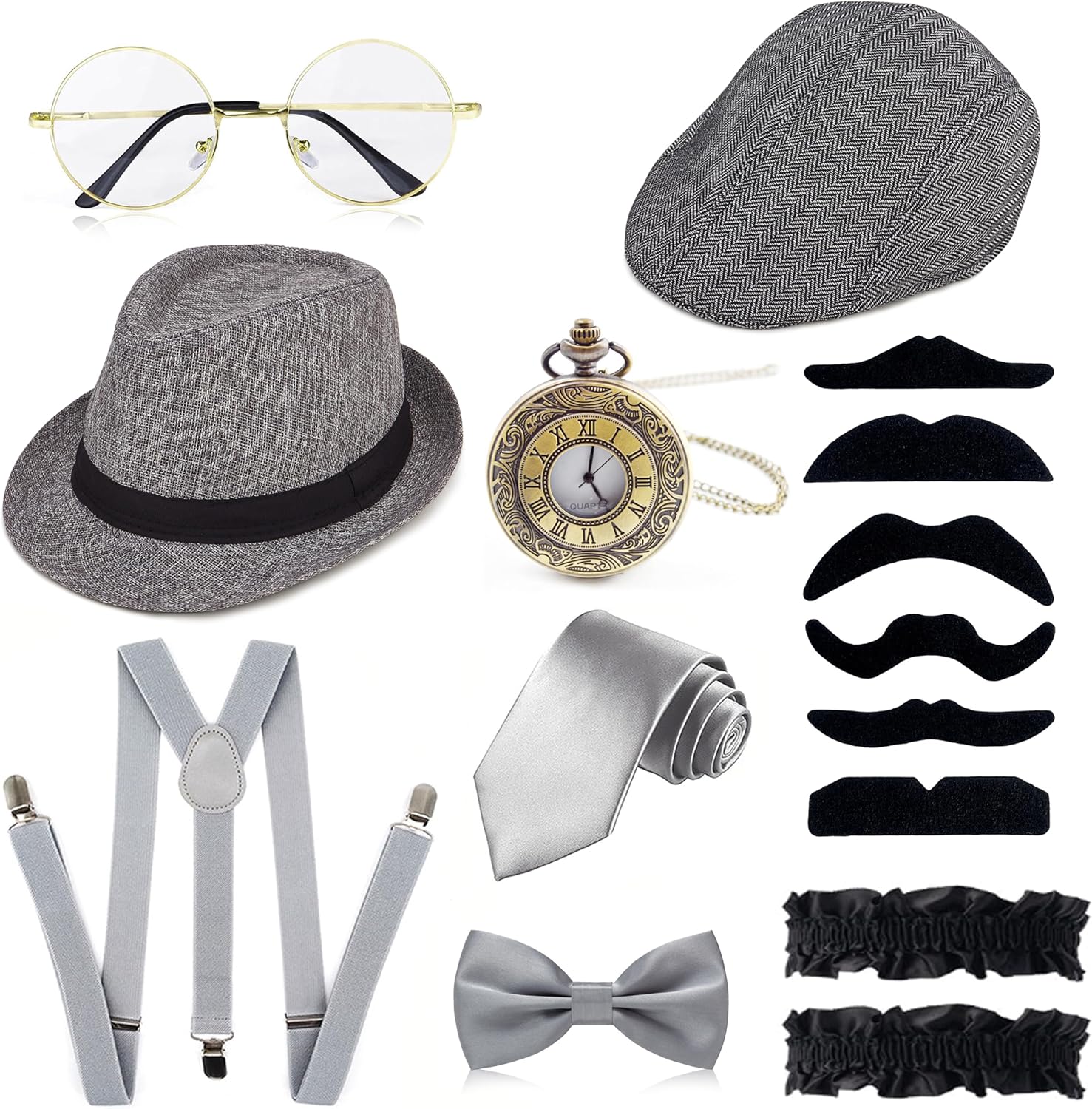 1920s Mens Costume Accessories Outfit Fedora Hat Vintage Roaring 20s Costumes Gangster Accessories for Gatsby Party