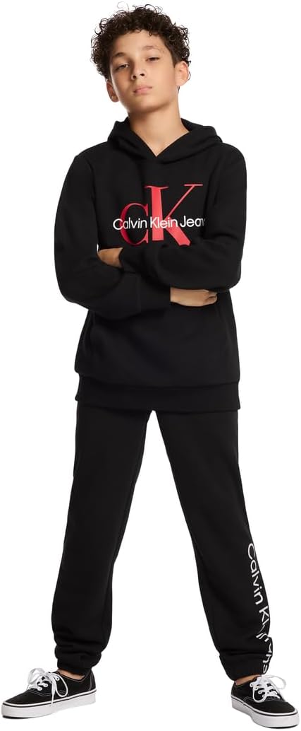 Calvin Klein boys Long Sleeve Pullover Fleece Hoodie