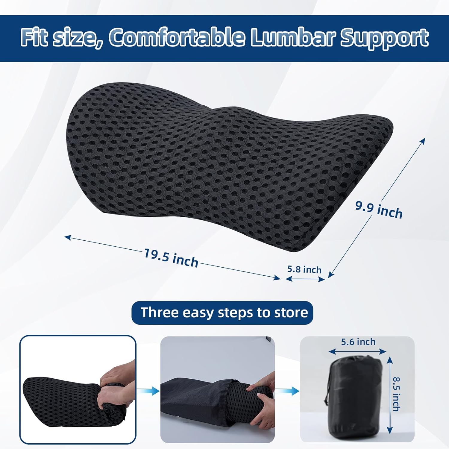 【With Portable Storage Bag】Memory foam lumbar support with a drawstring bag, the storage size is about 8.5*5.6 inch, you can carry the lumbar pillow in a portable way, whether you are playing outdoors, traveling or on a business trip, enjoy comfortable sit and rest at anytime.
