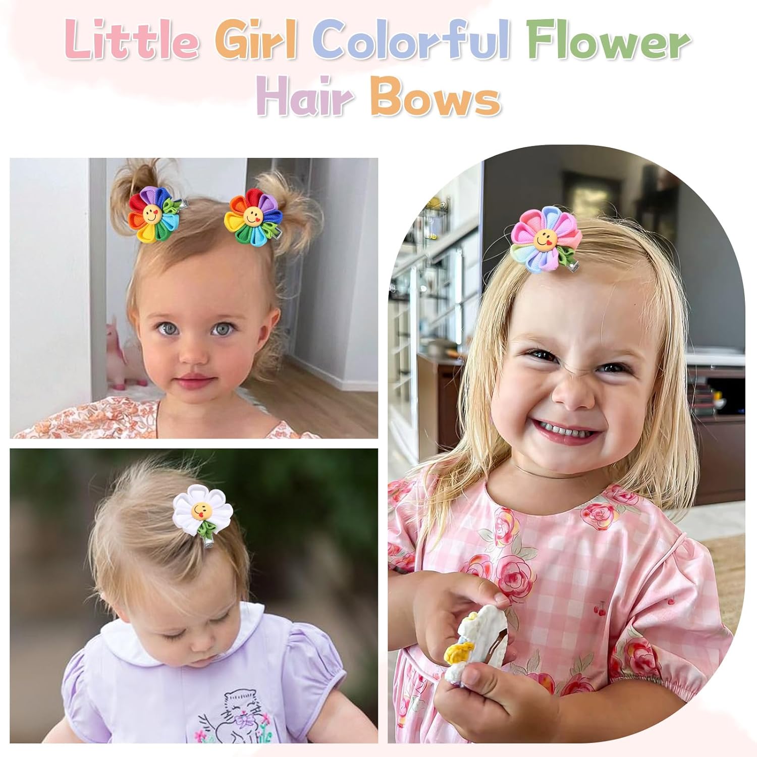 6PCS Hair Bows for Girls with Face Colorful Flower Hair Bow Clips Rainbow Hair Accessories with Alligator Clips for Girls Teen Kids Toddler Children