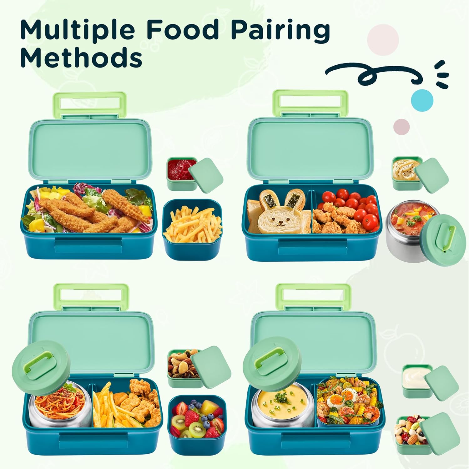 LEAK-PROOF KIDS BENTO BOX with ICE PACK: This bento lunch box comes with a detachable ice pack that keeps food cool all day long. Each compartment has its own tight-sealing lid to lock in freshness and prevent odors during transport. The simple child-friendly latch makes opening and closing effortless for little hands