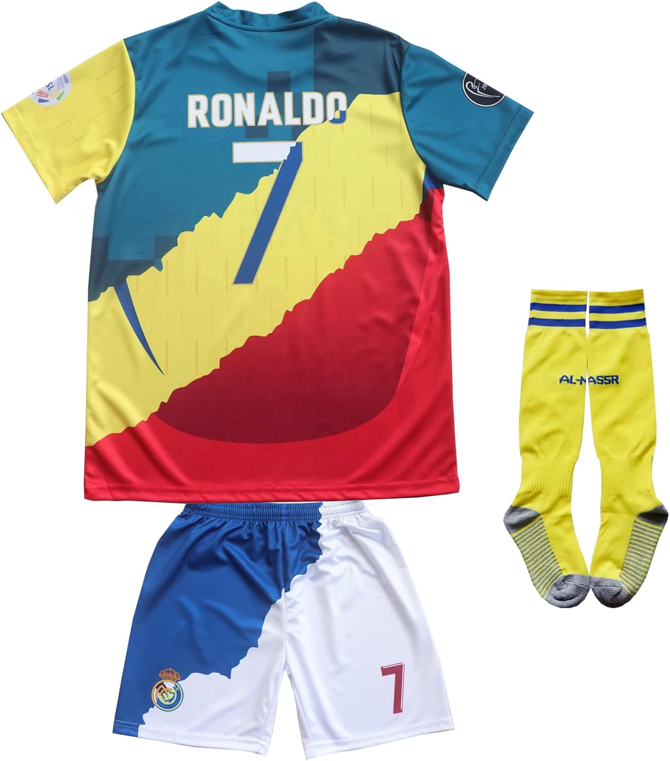 LeenBD Madrid Manchester Al NASSR #7 Kids Soccer Jersey Shirts Football Futbol Socks Set Youth Sizes