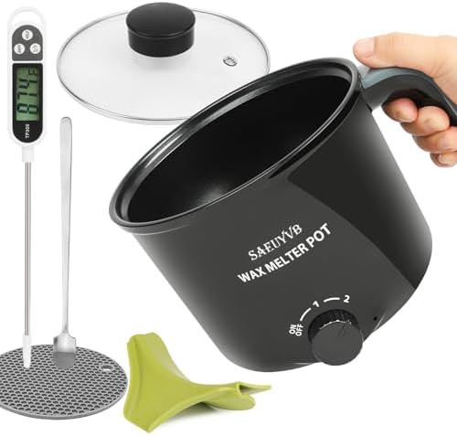 SAEUYVB Candle Making Kit with Wax Melter,Candle Making Supplies,Electric Wax Melter for Adults Beginners with Silicone Nozzle,Thermometer,Stirring Spoon, Silicone Pad,Instructions