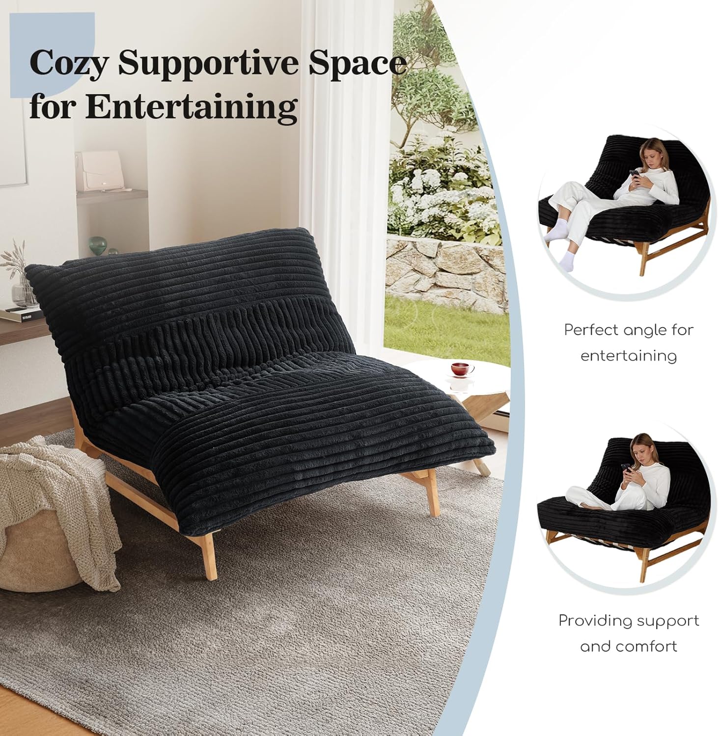 WJShome Oversized Chaise Lounge Chair,47.24" Sofa Chair, Accent Chair,Sleeper Sofa Bed for Living Room,Comfy Recliner Loveseat Couch with Removable Upholstered for Reading Bedroom (Black)