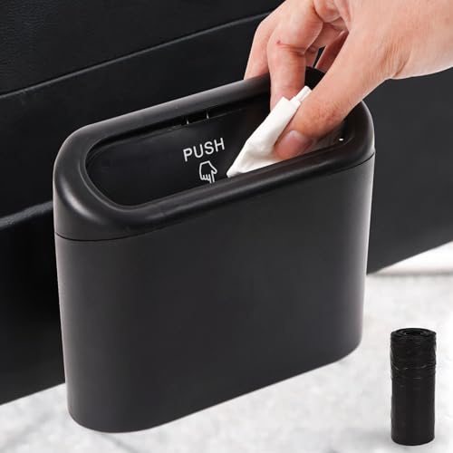 Car Trash Can with Lid and 30 Pcs Plastic Trash Bag - Portable Dustbin for Auto, Desk, and Home - Vehicle Garbage Organizer, Compact Bin