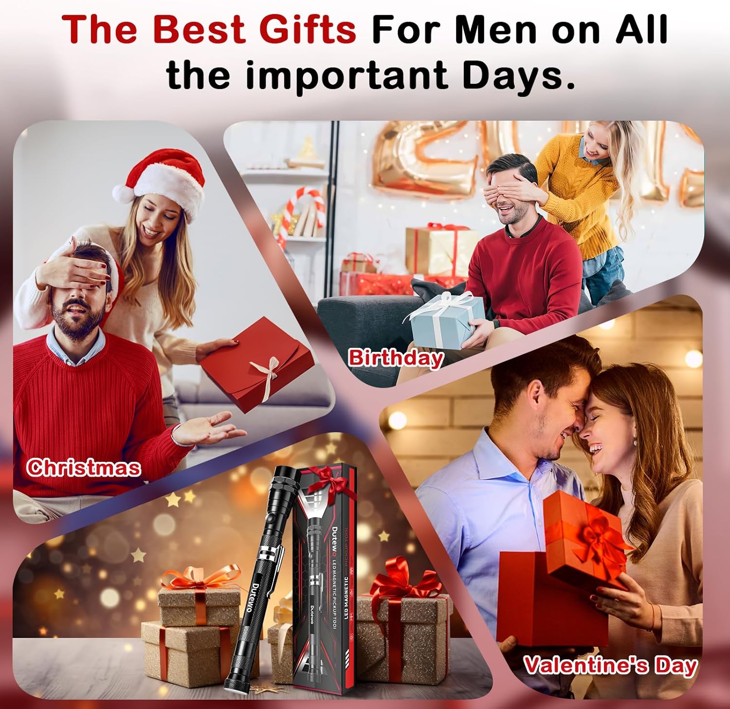 Gifts for Men LED Magnetic Pickup Tool Stocking Stuffers for Adults Extendable Magnetic Flashlight Cool Gadgets for Husband Dad Father Boyfriend Women Grandpa