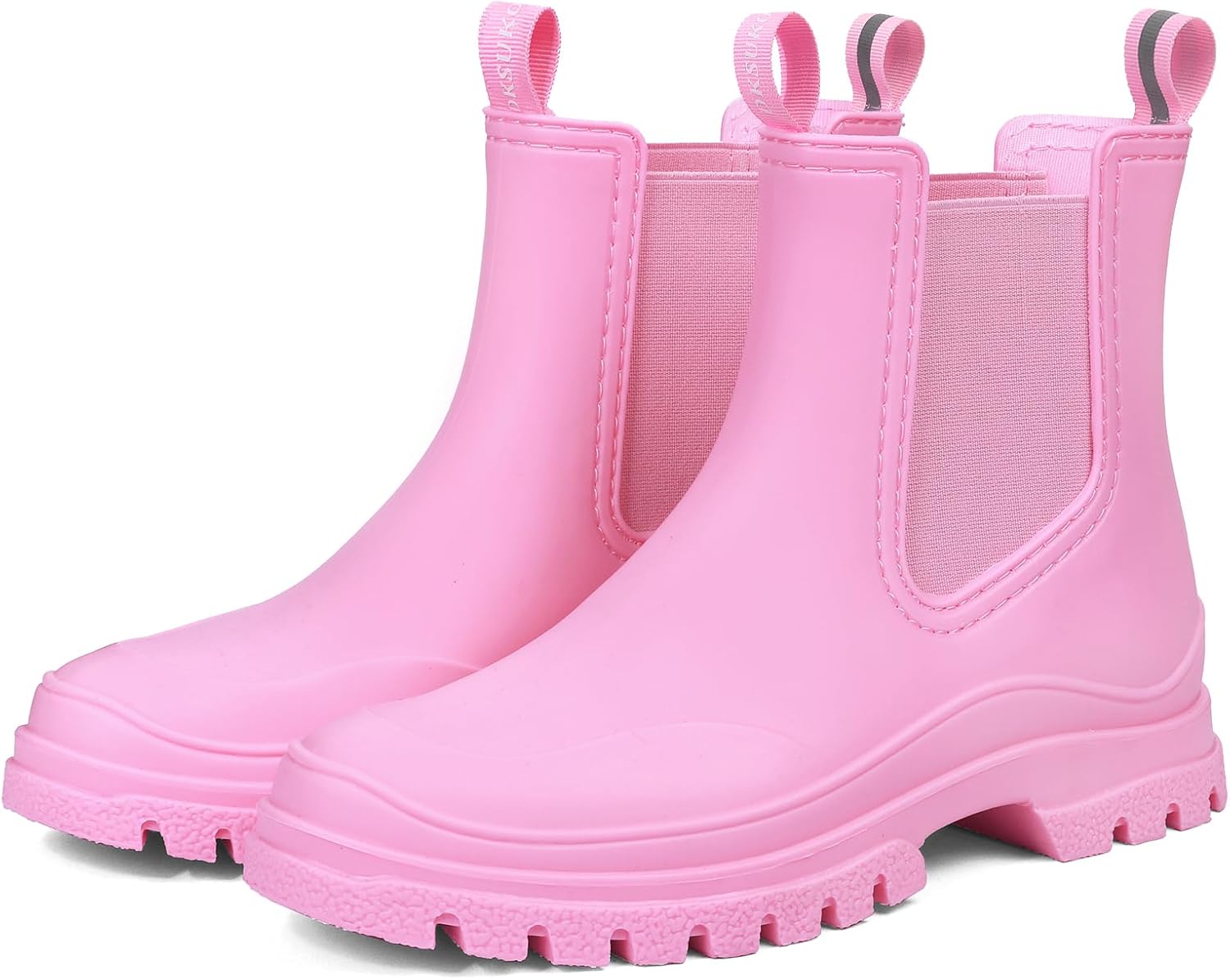 DKSUKO Women's Short Rain Boots Rubber Waterproof Garden Boots Elastic Slip On Ankle Chelsea Boot Fashion Insulated Rain Shoe for Outdoor Work Thick Sole