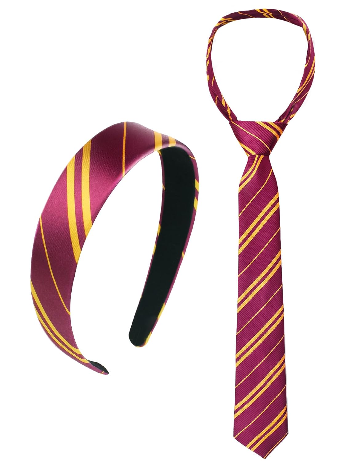 Package included: Our package comes with a burgundy red and yellow striped headband and a matching tie, giving you a coordinated wizard or magical-themed look.The headband and tie combo adds a polished and playful element to your costume