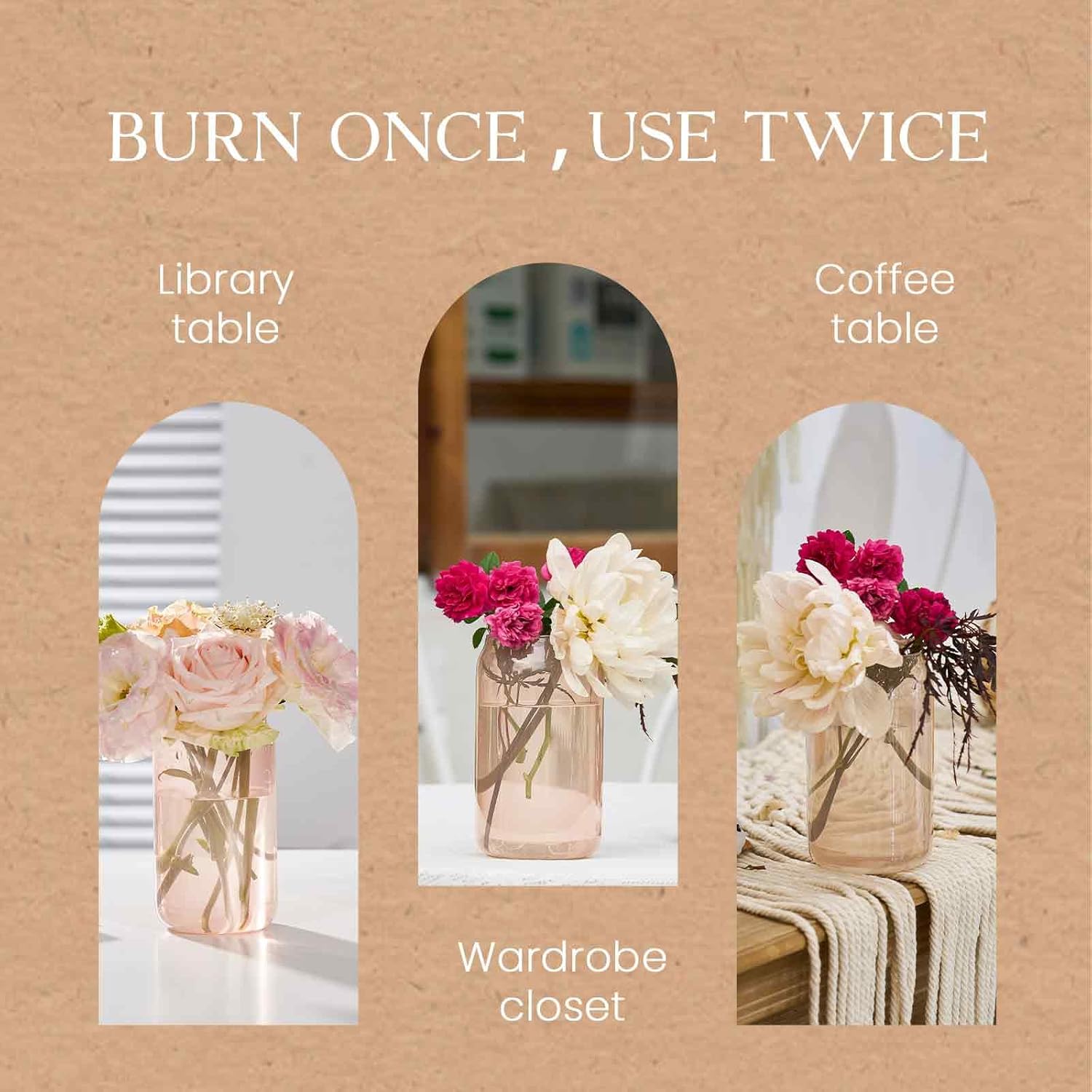 【Recycling glass jars】:The glass jar for the candle is reusable, when the Jar Candle is used up, wash the candle with soapy water and you will get a small pen holder or a small flower pot. this scented candle is the perfect Home decoration, creating a cosy atmosphere and bringing peace and relaxation to the room.