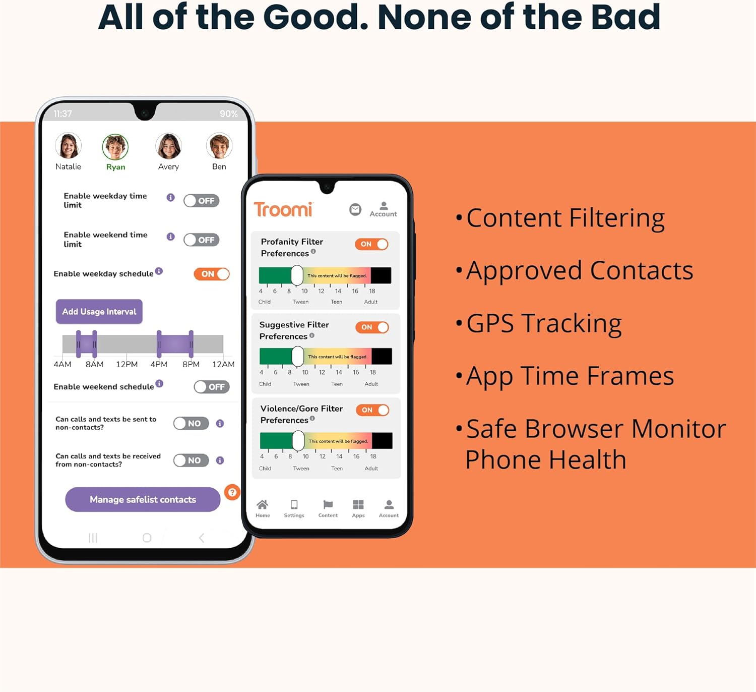 SAFE & SECURE SMARTPHONE FOR KIDS: Designed with built-in parental controls so you can manage apps, contacts, screen time, and location— all from the Troomi Parent Portal on your own device. No social media, no open app stores, no stress. Latest 2025 model with upgraded hardware and improved parental controls.